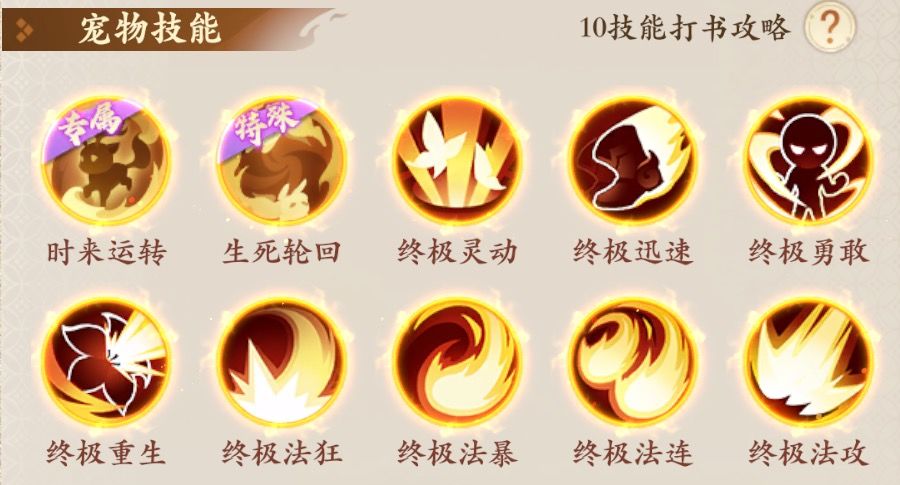 终极法攻、终极法暴、终极法连、终极法狂、终极灵动、终极迅速、终极重生、终极勇敢