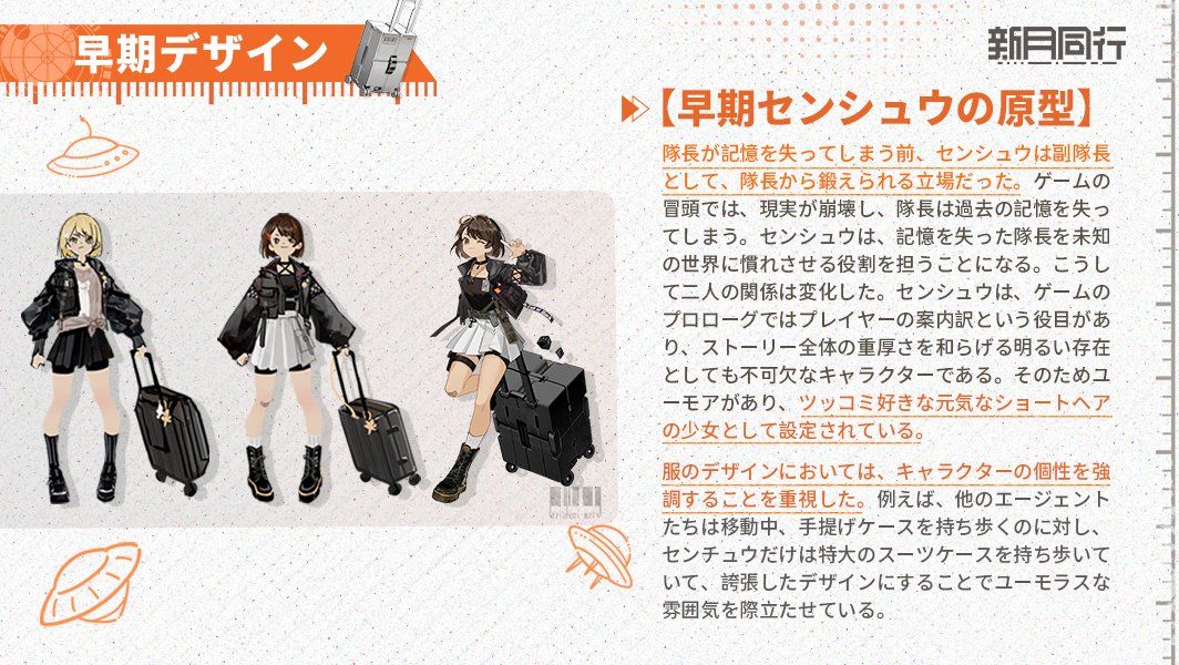 在组长失忆前,千秋作为副手,是被引领、锻炼的对象。游戏时间线开始时,组长因现实不稳定失去了过往记忆,改为由千秋来带领组长熟悉这个陌生的世界,二者的关系发生了转变。作为玩家前期的引领者,我们希望千秋能为整体较为沉重的故事带来更鲜明的氛围点缀,因此定位是一个诙谐,爱吐槽的元气短发少女。