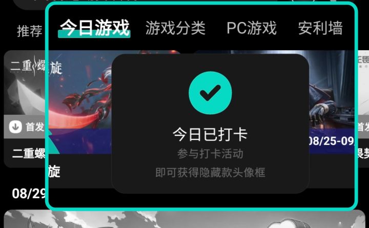 如何参与打卡活动在「首页 - 今日游戏」向下浏览,出现打卡标记即可。