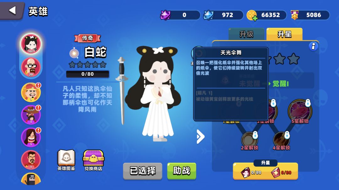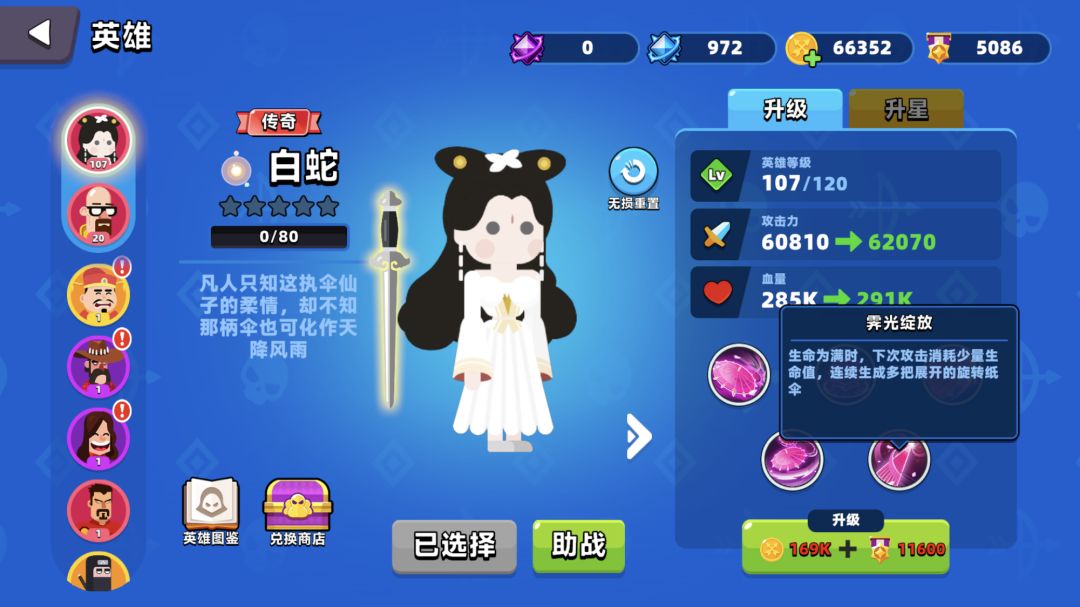 再说获得方式,我是花了2w钻石买了100活动次数就凑够了1000鲜花兑换,其他人花费钻石应该大差不差吧!还有就是直接328购买角色!看个人的钞能力了!还有一种就是幸运大转盘活动可以兑换到自选!如果你装备太差没有合适的s,我个人是建议把兑换机会给自选S装备!S装备紫色也好用!装备升级的话卡在70级就够了,把金币花在天赋和英雄升级上,当然了优先获得白蛇后考虑s装备!