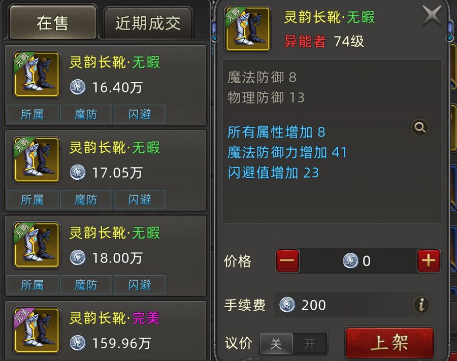 游戏上架东西的时候,系统会自动给你显示:“目前市场上,跟你这件装备词条差不多的,最低卖多少,最近成交价又是多少。”