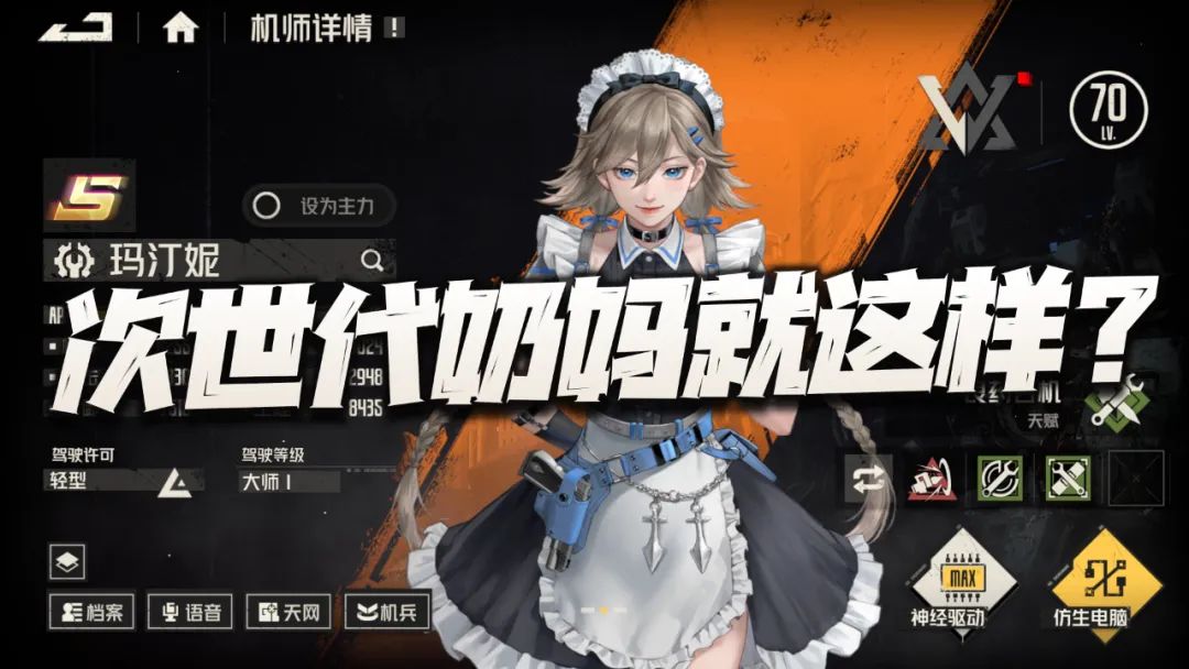 首先她的天赋说白了就是能在轻甲逻辑下的带上修理背包,例如她的专属机兵幻惑在带了一个打桩机和手盾后,再带上一个金色的修理背包刚好就是1680的满出力状态,而想要达成这个搭配......维一也看了下目前版本的几个主流格斗轻甲,基本上都满足不了这个要求,而能满足的大部分都是突击类的轻甲,这个设定也欢迎大家留言来发表下自己的看法了。
