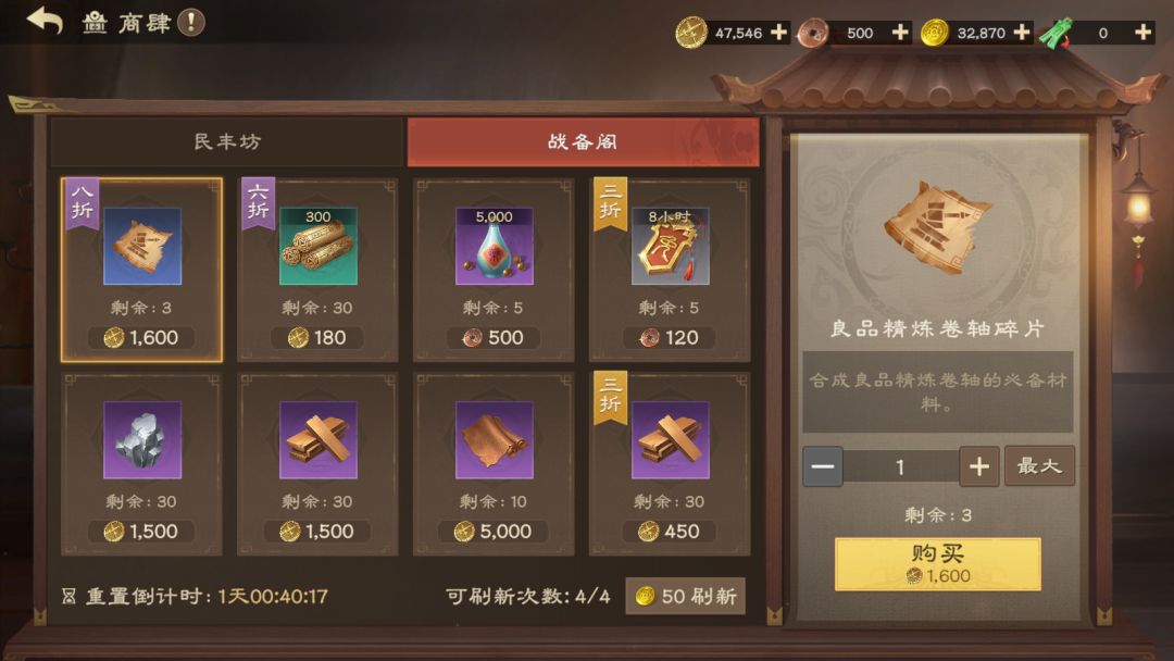 主公们可以通过在商肆中购买等方法获取卷轴碎片来合成卷轴。