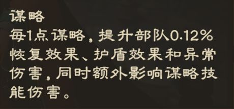 谋略(提升回复护盾效果,异常伤害以及谋略技能伤害)