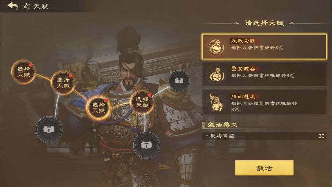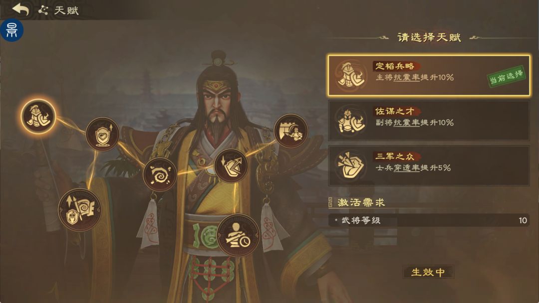 随着等级和星级的提升,武将可以通过解锁不同天赋,来提供不同增益。