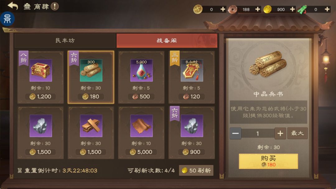 兵书获取方式主要是在商肆中购买或讨伐24级及以上的叛军掉落。