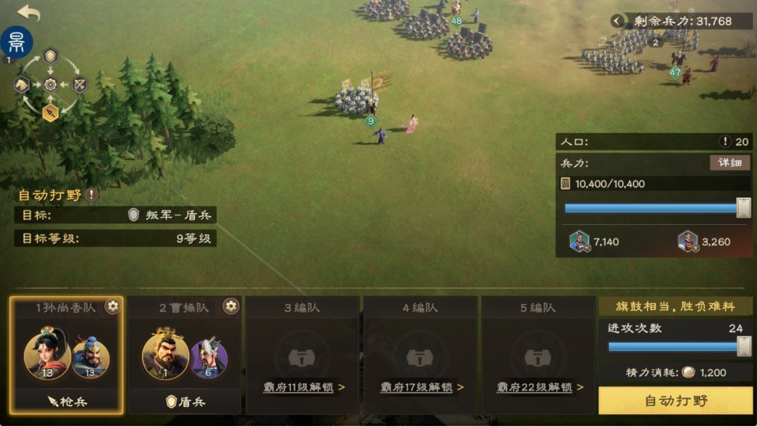 在后期,主公们可以选择主力队伍继续讨伐高级叛军,通过叛军掉落的兵书喂养2、3队,以此来达到协作升级的目的。