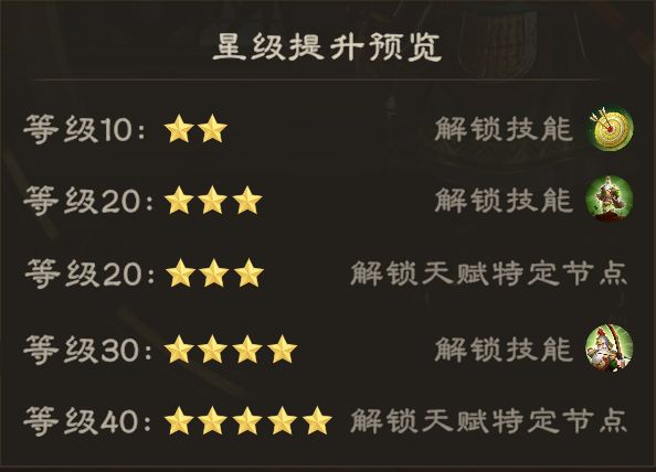 武将达到一定等级之后,可解锁星级提升功能。