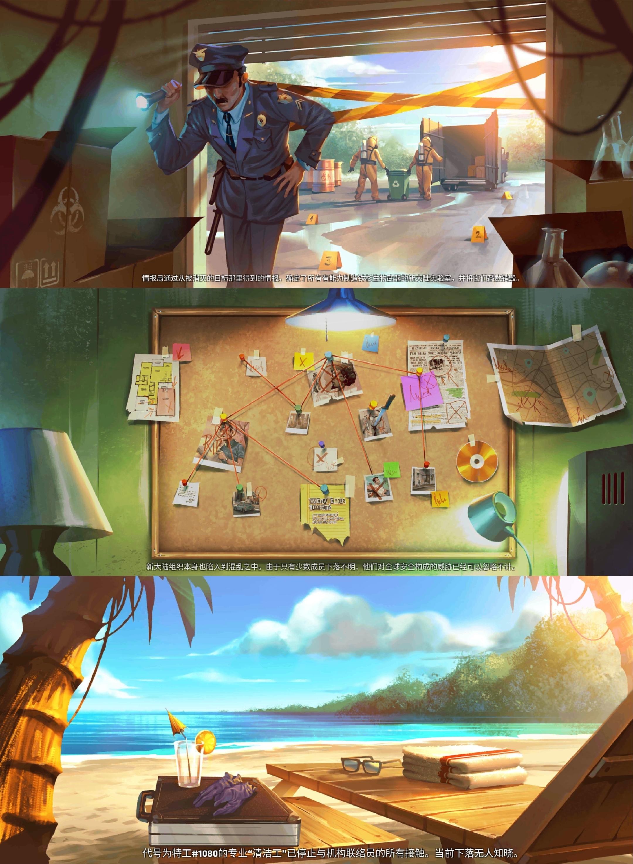 这是死无对证系列游戏的第二部(Nobodies:After Death),这一部的任务还是处理尸体,清理犯罪现场,做到毁尸灭迹。这次玩的时候留意了一下故事情节:叛变的特工偷走了政府的代号为“铁杉”的生化武器的机密研究文件,潜逃过程中将文件卖给了名为“新大陆”的生态恐怖组织。特工们的任务是铲除叛变的特工和“新大陆”的科学家,而“我”的任务是处理他们了结了的尸体、清理现场痕迹,偶尔还要为尸体制造死亡事故。