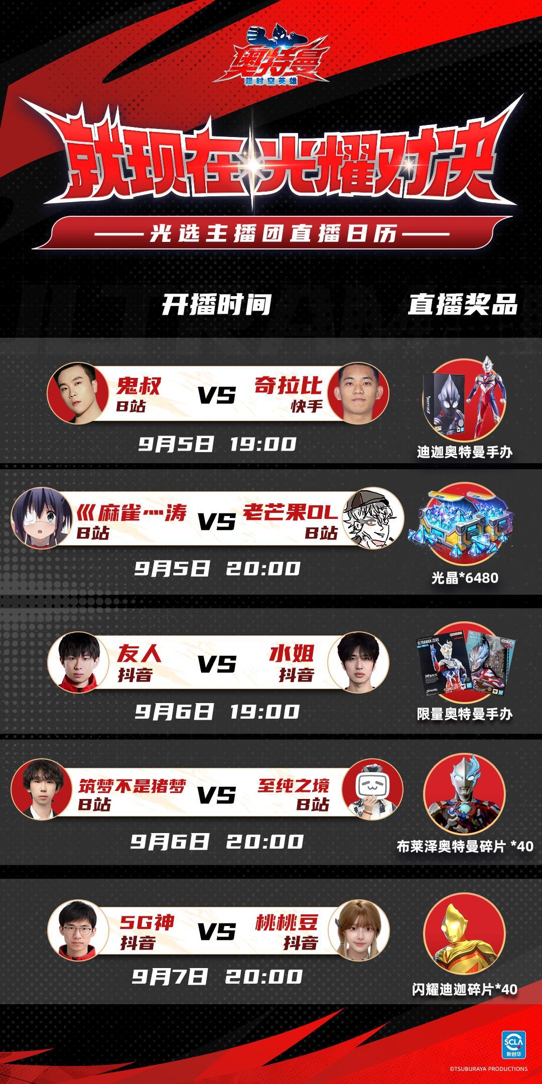 《奥特曼:超时空英雄》PVP「光耀对决」专属「光选主播团」 终极阵容,正式官宣!两大主播阵营——「光之队」与「耀之队」——强势集结!两大阵营正面硬刚,充能抽奖即将炸场,你还在等什么?!