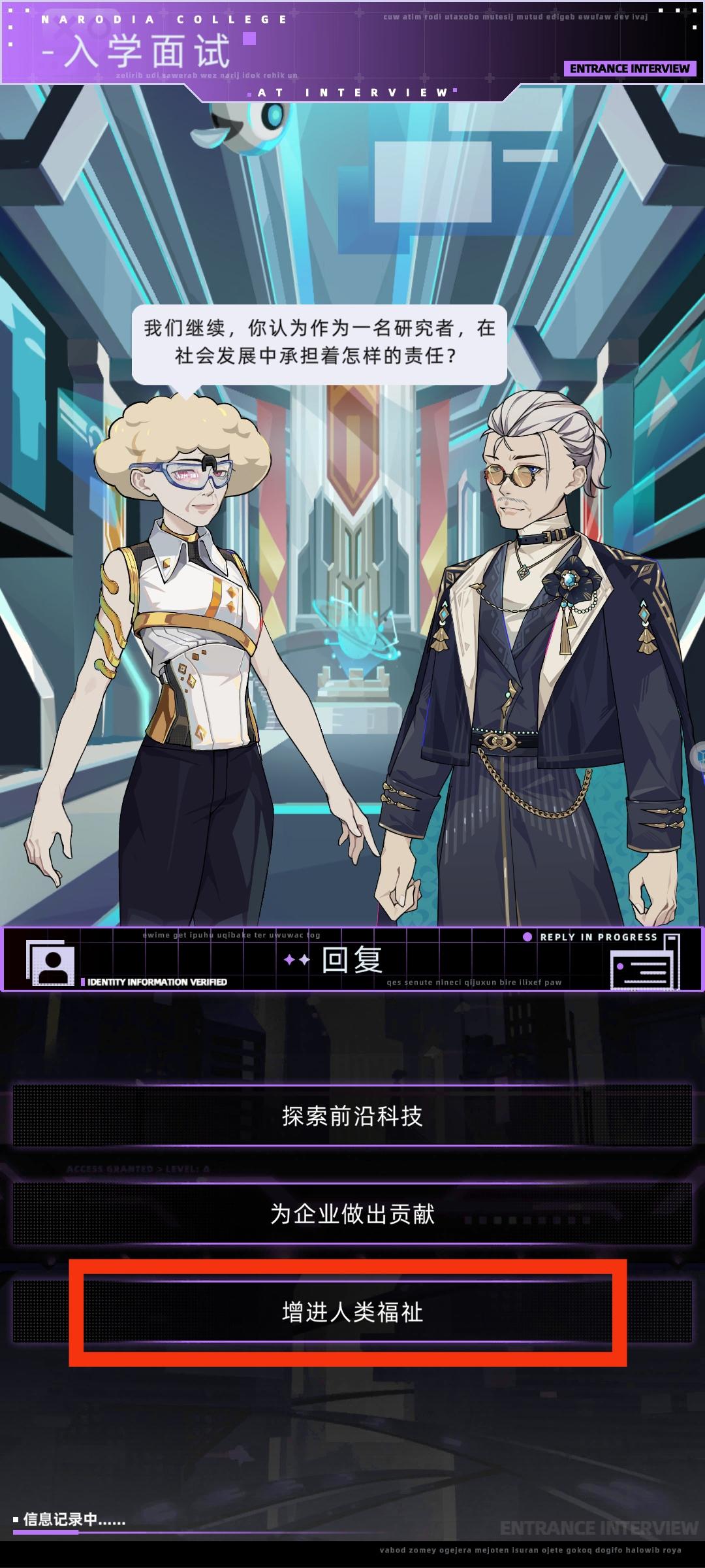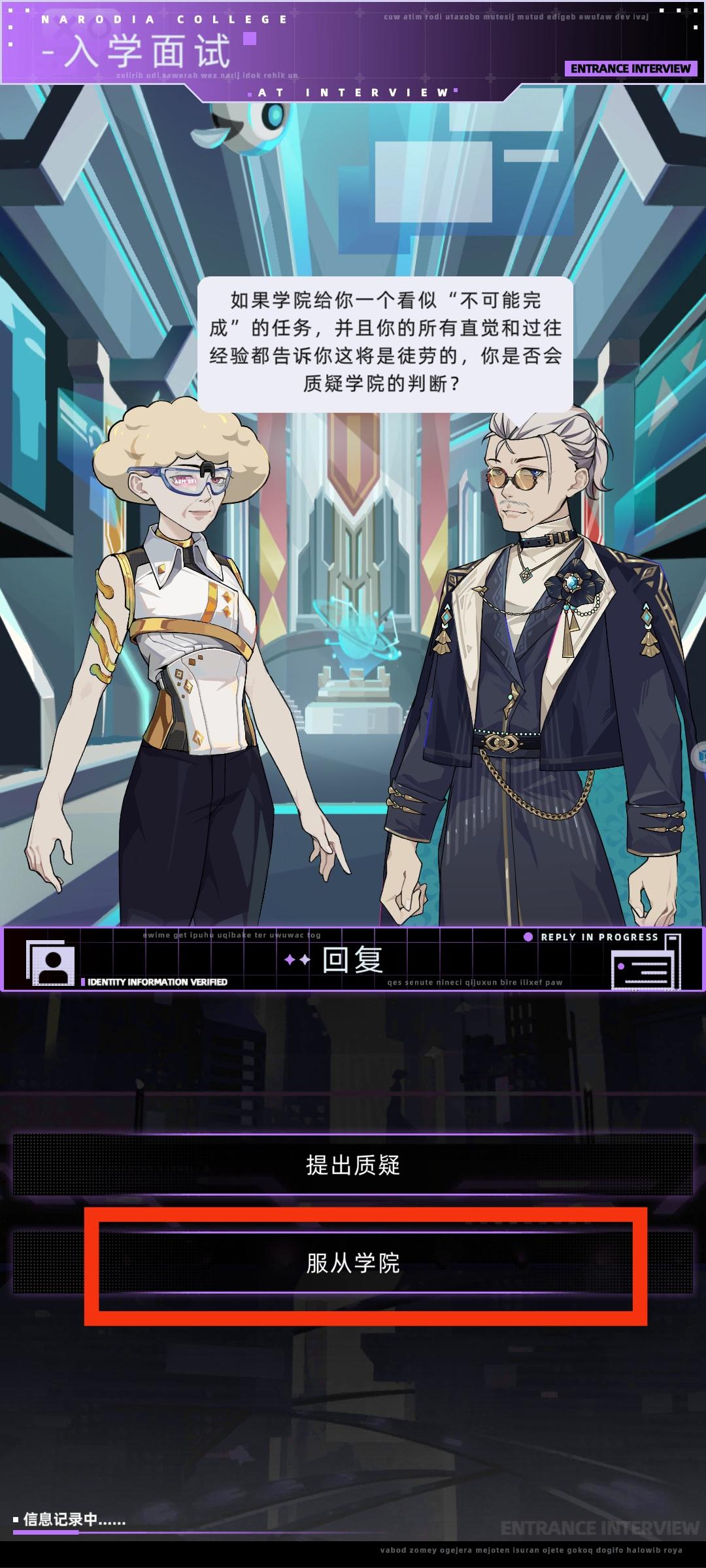 开了几个存档对比了下纳罗迪亚入学面试