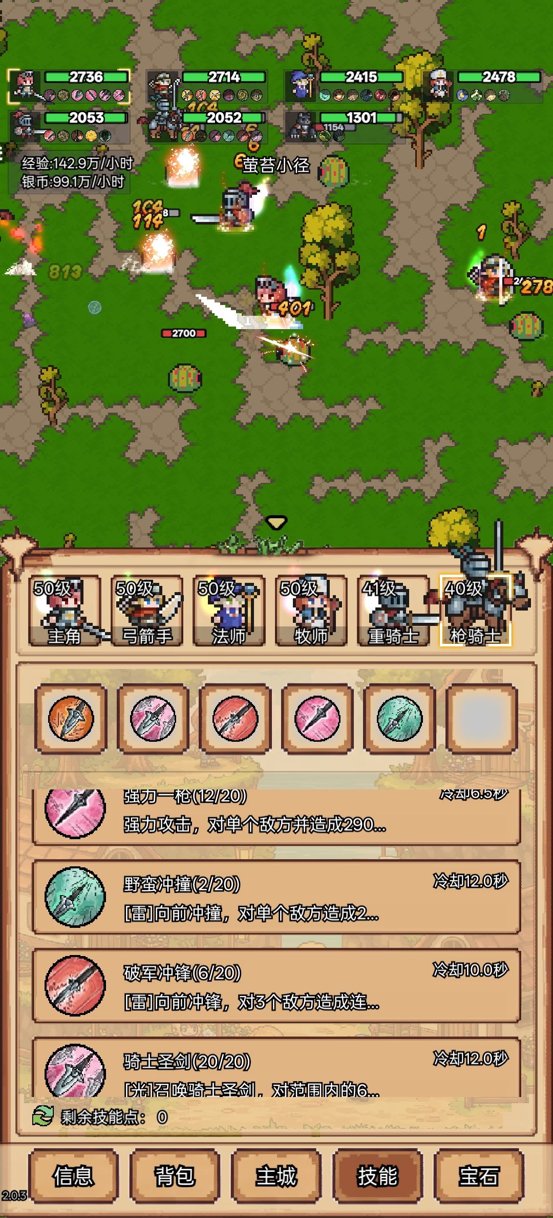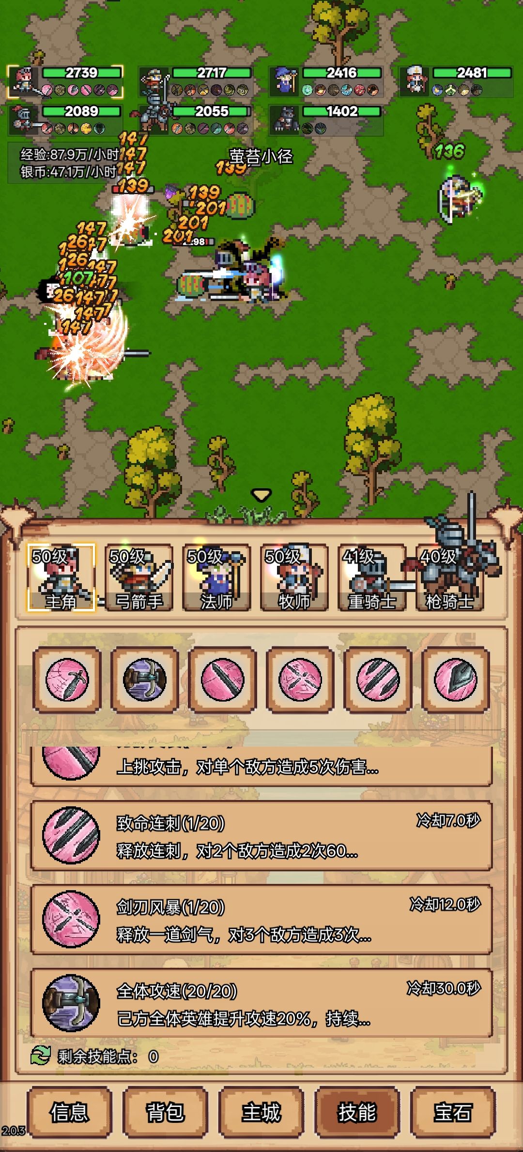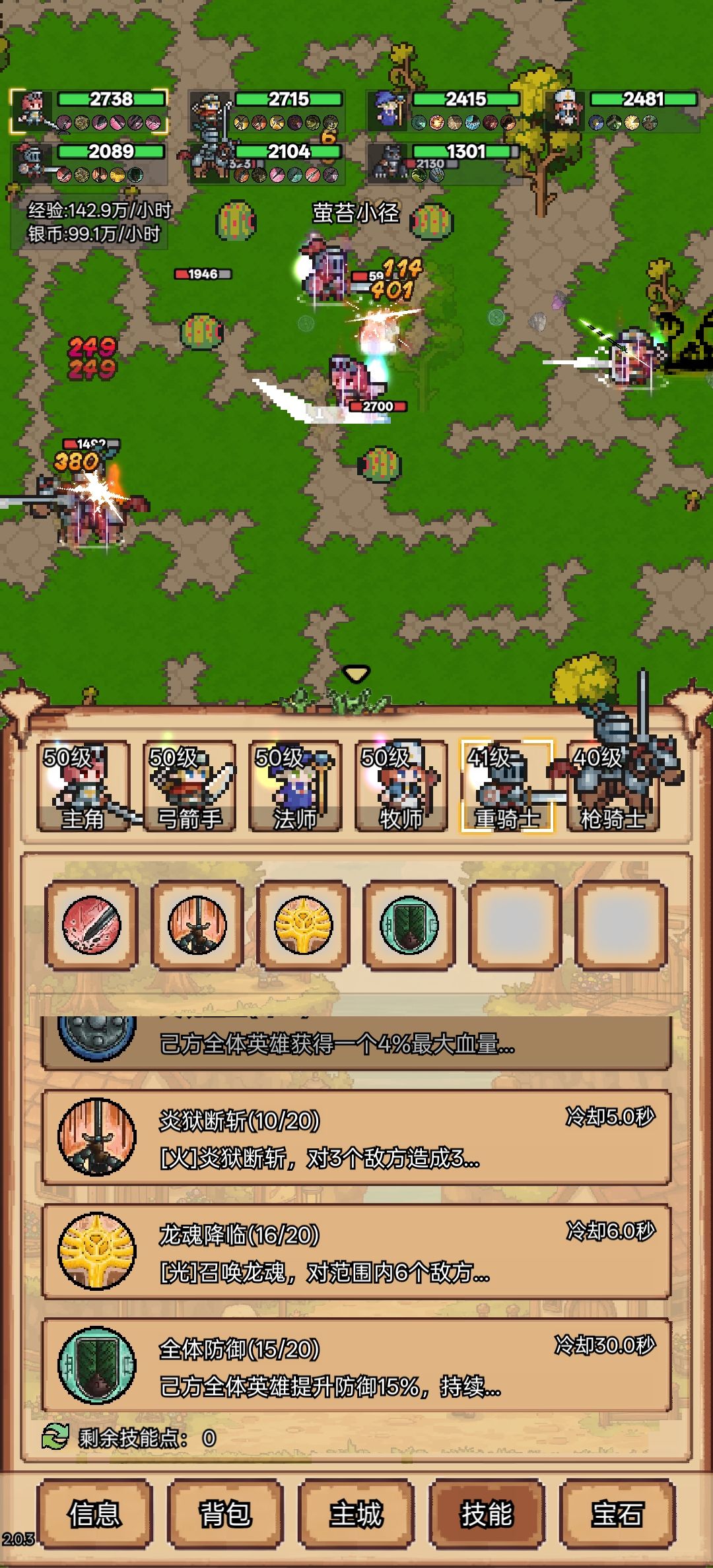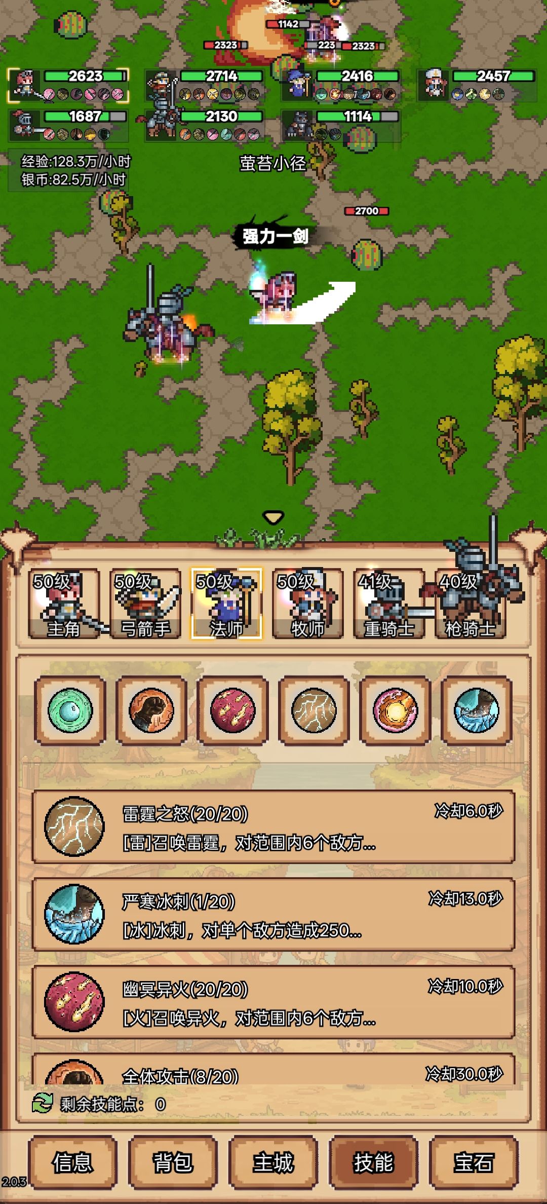 9.前期的不同等级阶段,各职业技能加点方法也各不相同,但逻辑是固定的,那就是前期怎么最大化挂机效率怎么加,比如法师,在32级的时候,雷霆16+幽冥16,群体技能随着技能等级提升会增加攻击个数,法师这俩技能到了16级都锁头固定打6个怪,而某些职业群攻没有锁头,那说是单体攻击我都认可,这也是为什么法师能带来最高收益的原因,牧师的召唤技能那头熊自带群体技能攻击,牧师圣光群攻也是锁头攻击,所以牧师排第二。再比如主角40级前,把强力一剑加满再加点别的就够用了,40级洗点,加满攻速和强力一剑,人要懂得变通,而不是死板教条的固定模板,比如重骑,全体护盾很强,但前期不用,为什么?都站住不咋掉血了,护盾干啥呢,所以盾骑加点类似法师,龙魂16+炎獄16,龙魂是锁头的。有趣的是,牧师前期不需要加血,重骑前期不需要嘲讽加护盾,怎么输出最大化怎么来