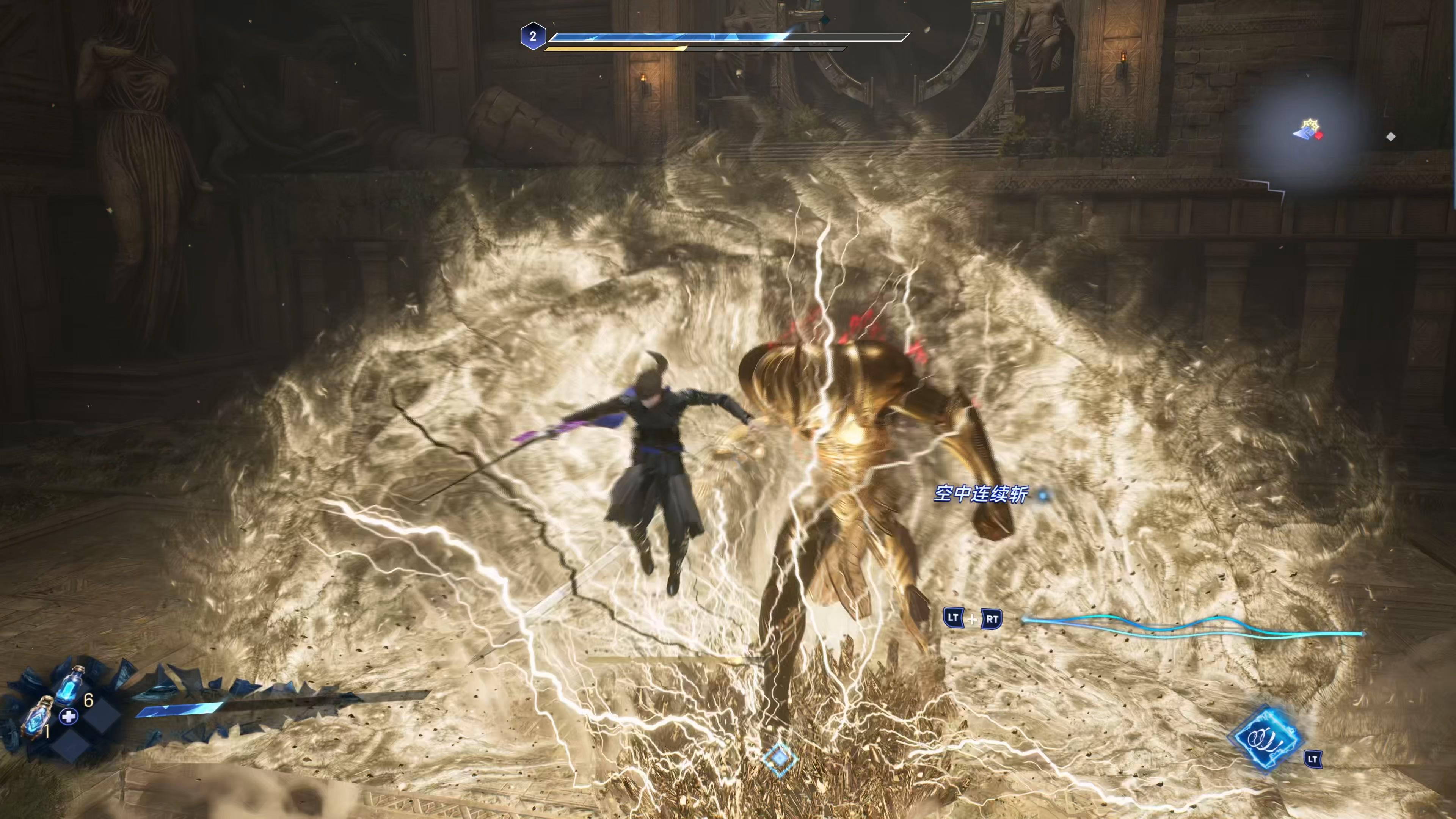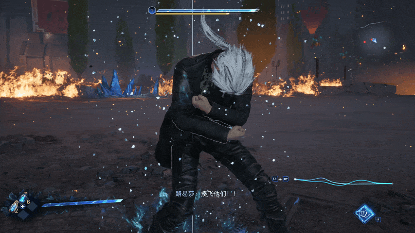 X、Y的轻重攻击,不同的段数可以接不同的攻击,肩键LB有龙后是闪身,没龙的时候是翻滚。B键是防御,闪避和防御都有完美判定,判定成功后可以按X进行追击,LT+组合键可以释放技能,LT+RT是变身,身体周围有一个手一样的东西自动旋转增加连击次数,其他的攻击也会有少许变化。