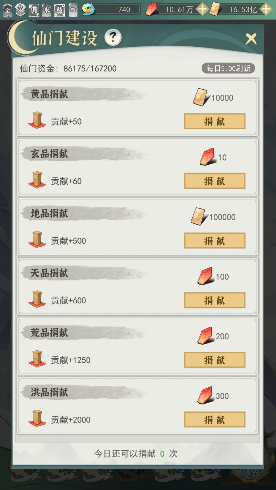 建设:每日5点刷新,加入后12小时内使用,每日三次地品贡献