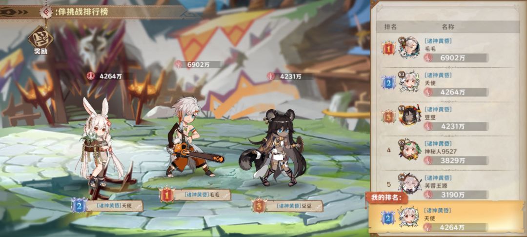 增伤辅助就自己看着带,但是不推荐,除非你是真没角色了,因为低品质的增伤,辅助提升都很低,还不如攻击频率,角色选择上除了前面说的必上的三个第一推荐的曼奇你如果抽了爱丽丝也可以上,九星的雪菲可以占高伤的位置,其他的谁攻击频率高上(集中升四个就行了其他的100级)