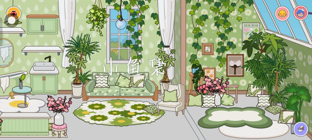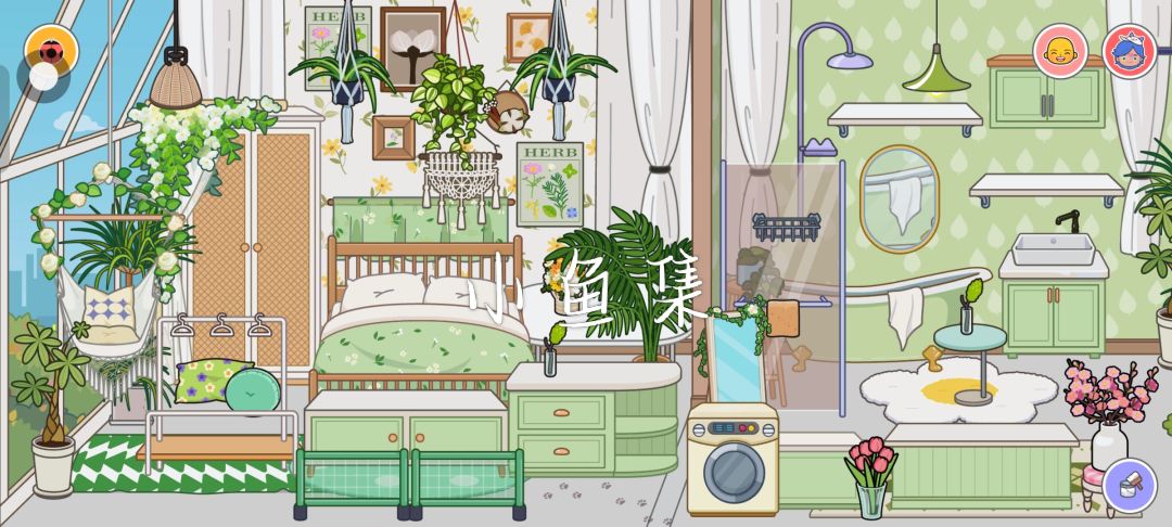 我把左边弄成了卧室,卫生间和休息的客厅在一个地方,楼梯间放了一些花族装饰,总体来说很清新挺好看的,可以给大家作为参考