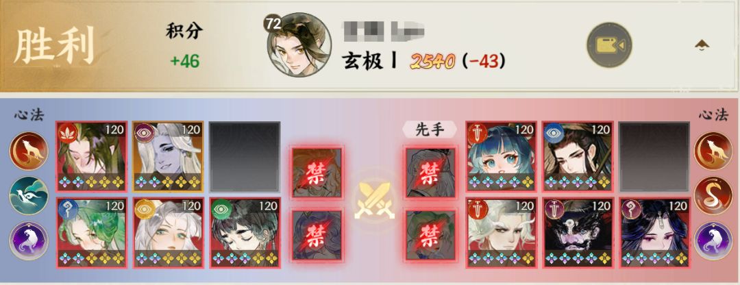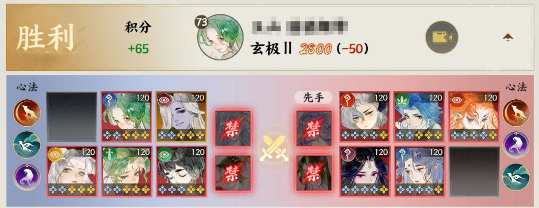 对方BAN蜃,我推测一下,双拉条在手,希望打的就是回合差,蜃给己方加速给对面推条,首回合推拉条能力是最强的,并且看阵容也可以看出蜃是我方一速,因此BAN蜃。