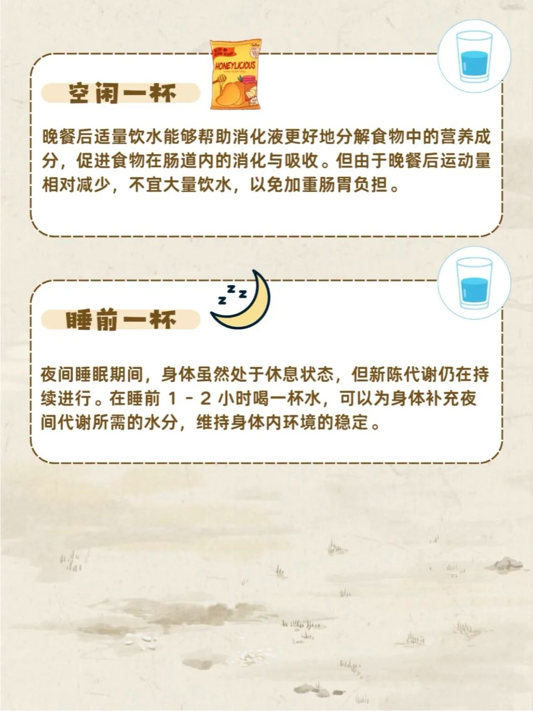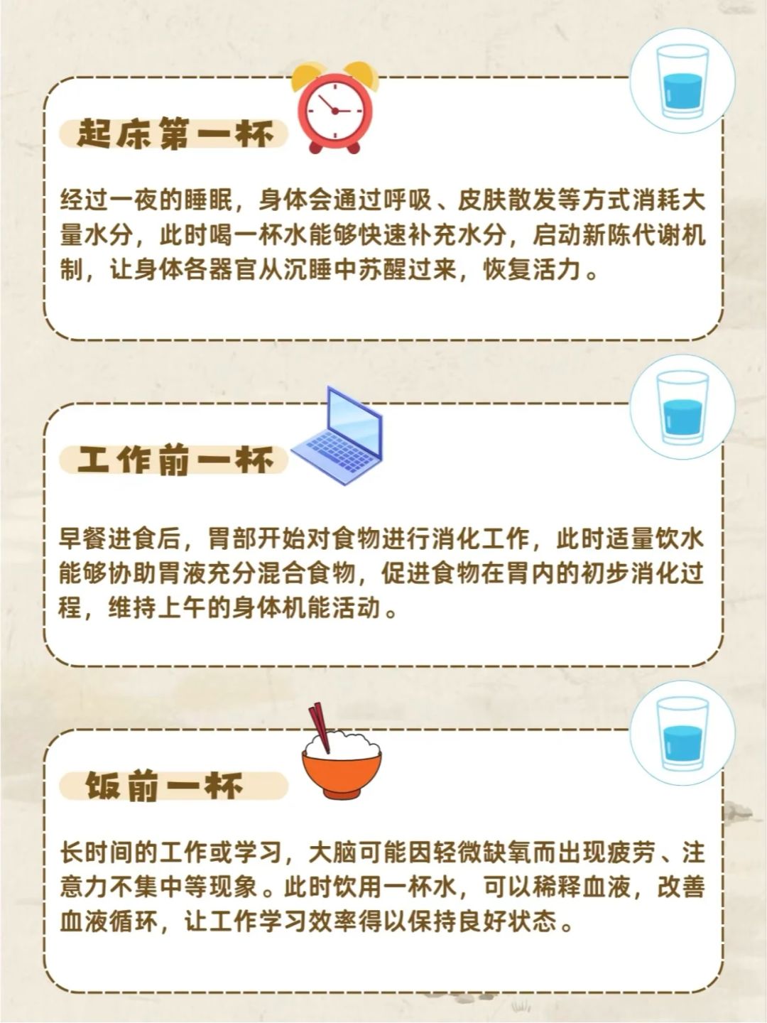 总以为喝水是小事?大错特错!早晨空腹一杯水,唤醒细胞,助肠胃蠕动;运动后少量多次补水,维持电解质平衡;日常定时喝水,别等渴了才想起,不然身体已轻度脱水。喝对水,才是健康的基石 。口渴已是身体严重缺水的信号。人体60%以上由水构成 ,喝水维持着新陈代谢、调节体温。每天1500 - 2000毫升的水分摄入,能让身体各器官顺畅运作。别等渴了才想起喝水,养成定时喝水好习惯。