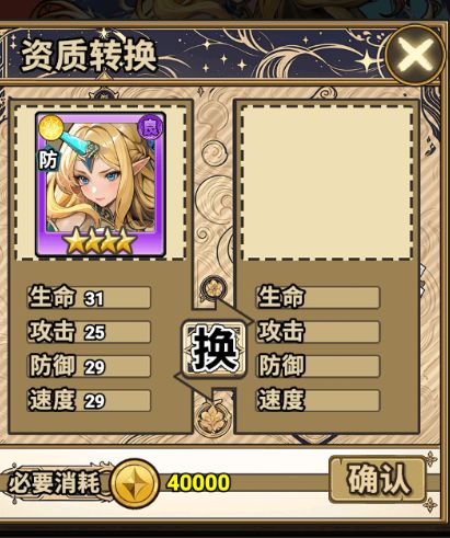5.角色升星,升星需要吃本体,需要练的角色如果获得了本体记得锁定,其次角色界面左边的绿牌可以转换资质,如果已经练了的角色资质没后续获得的同角色资质搞,可以自己去转换!