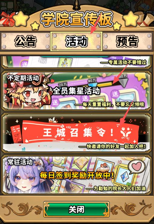 四:活动别漏了拿奖励,在主界面左上,打开后,选择中间 活动 ,然后往下拖动,可以打开 全员集星活动,有奖励拿的,其次王城召集令 就是所以问招募玩家活动了