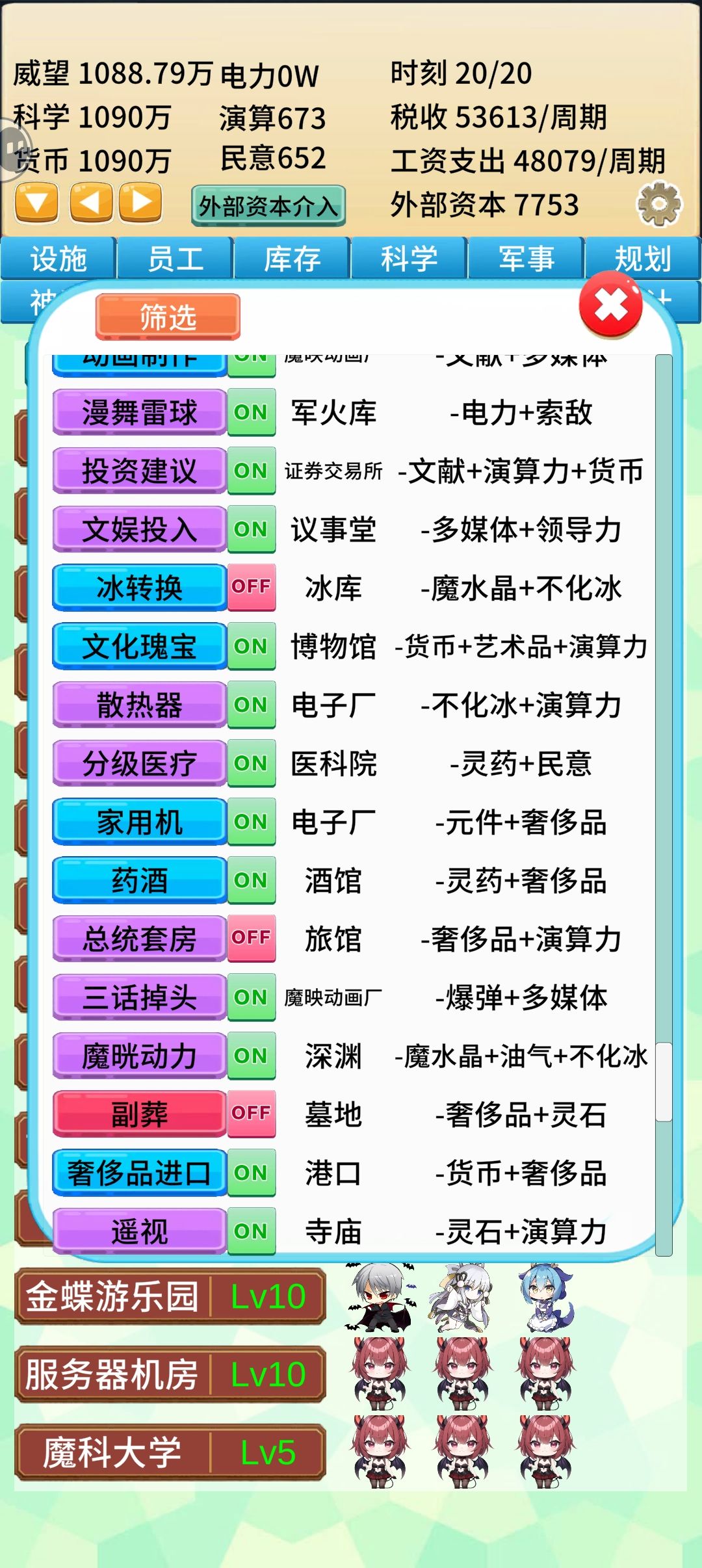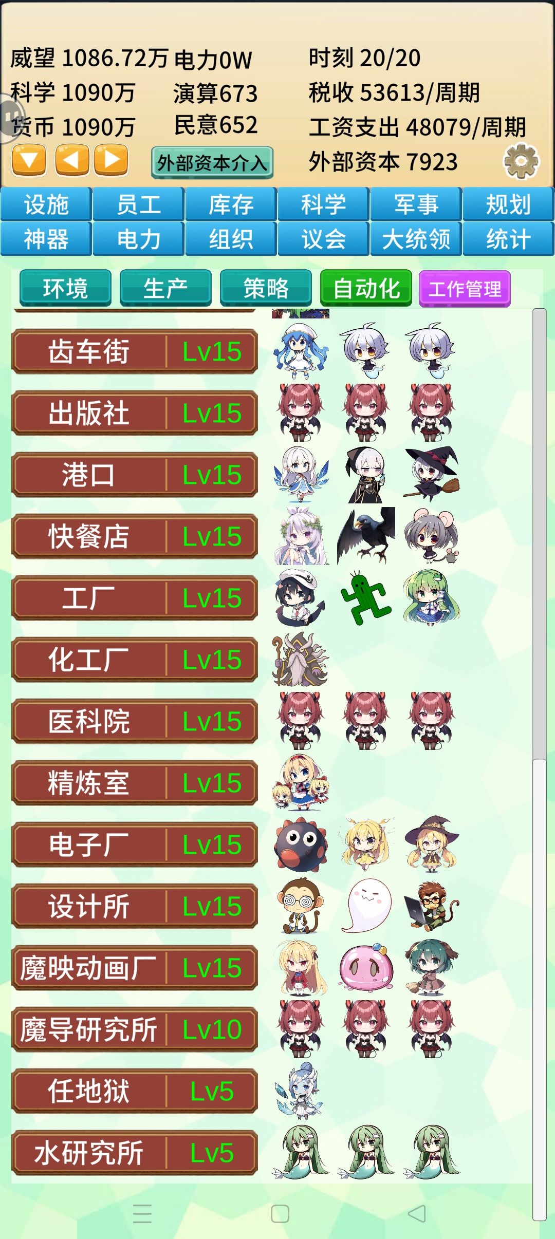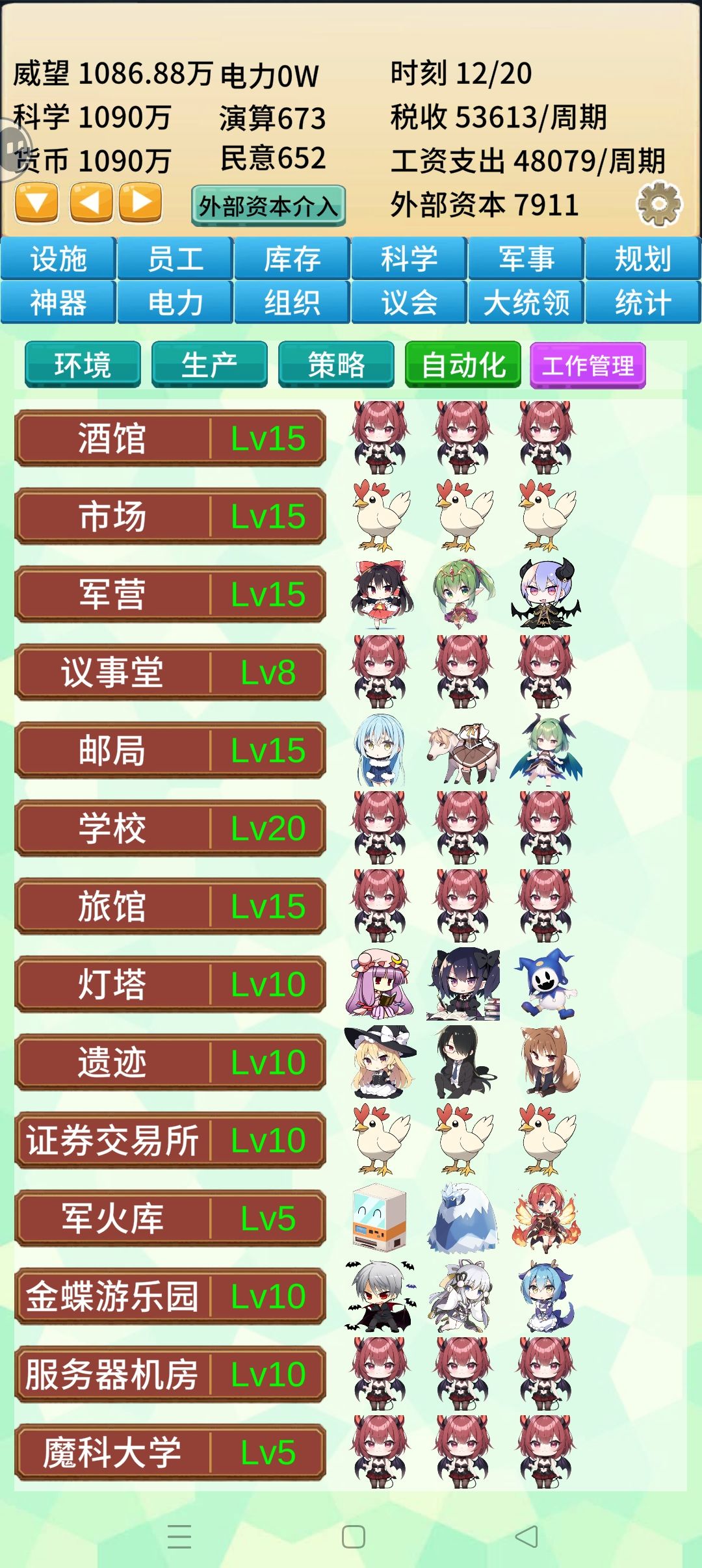 好久没来优化了,尽量减少了对其他产量,影响比较大的是奢侈品,其他都比较小,然后值得一提是军火库这三个带了三书,其他为了民意牺牲了一些产量,不过感觉还是没办法减少食物配给,如果不那么追求遗物的话电子厂最好是每个都带技师和电场,其他基本上都一个技能带一个,如果对低级遗物没什么需要也可以让魔王他们去邮局,图太多放不下了,其他我放评论区里