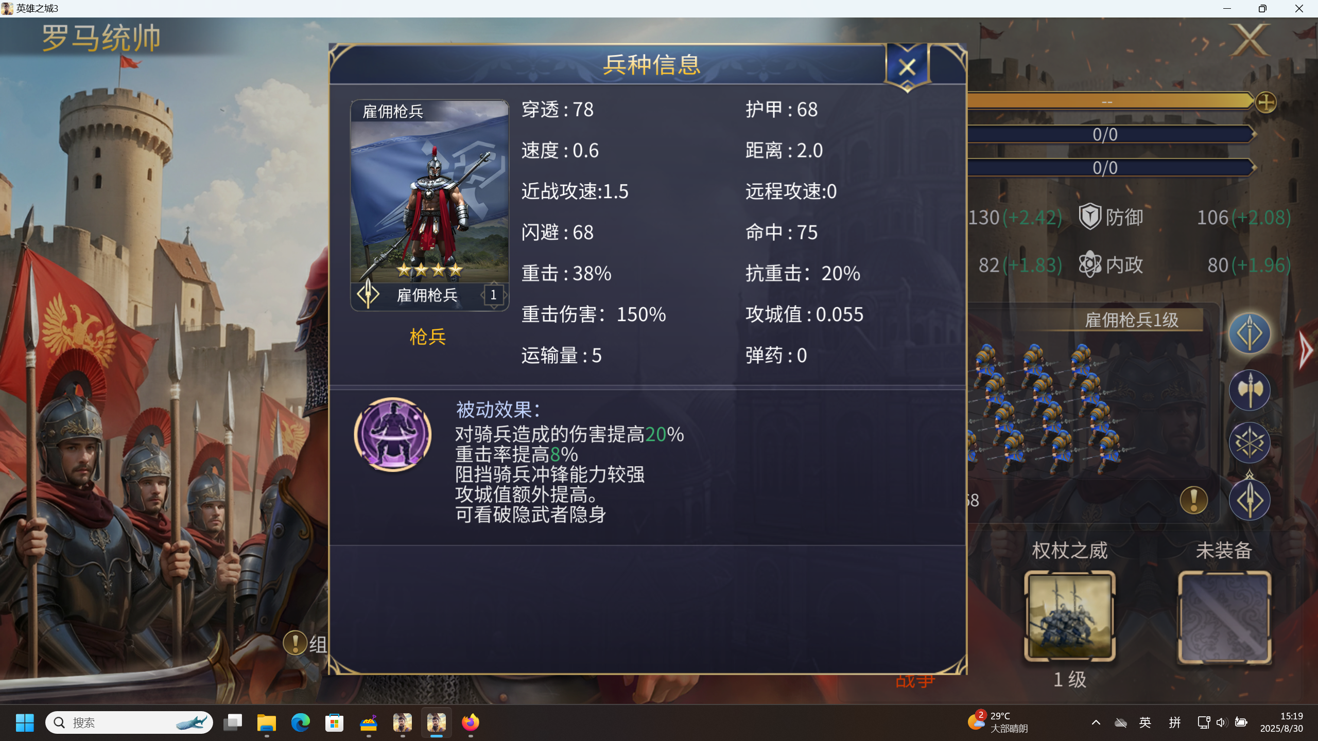安东尼作为标准的枪兵英雄,自带三个兵种都是枪兵