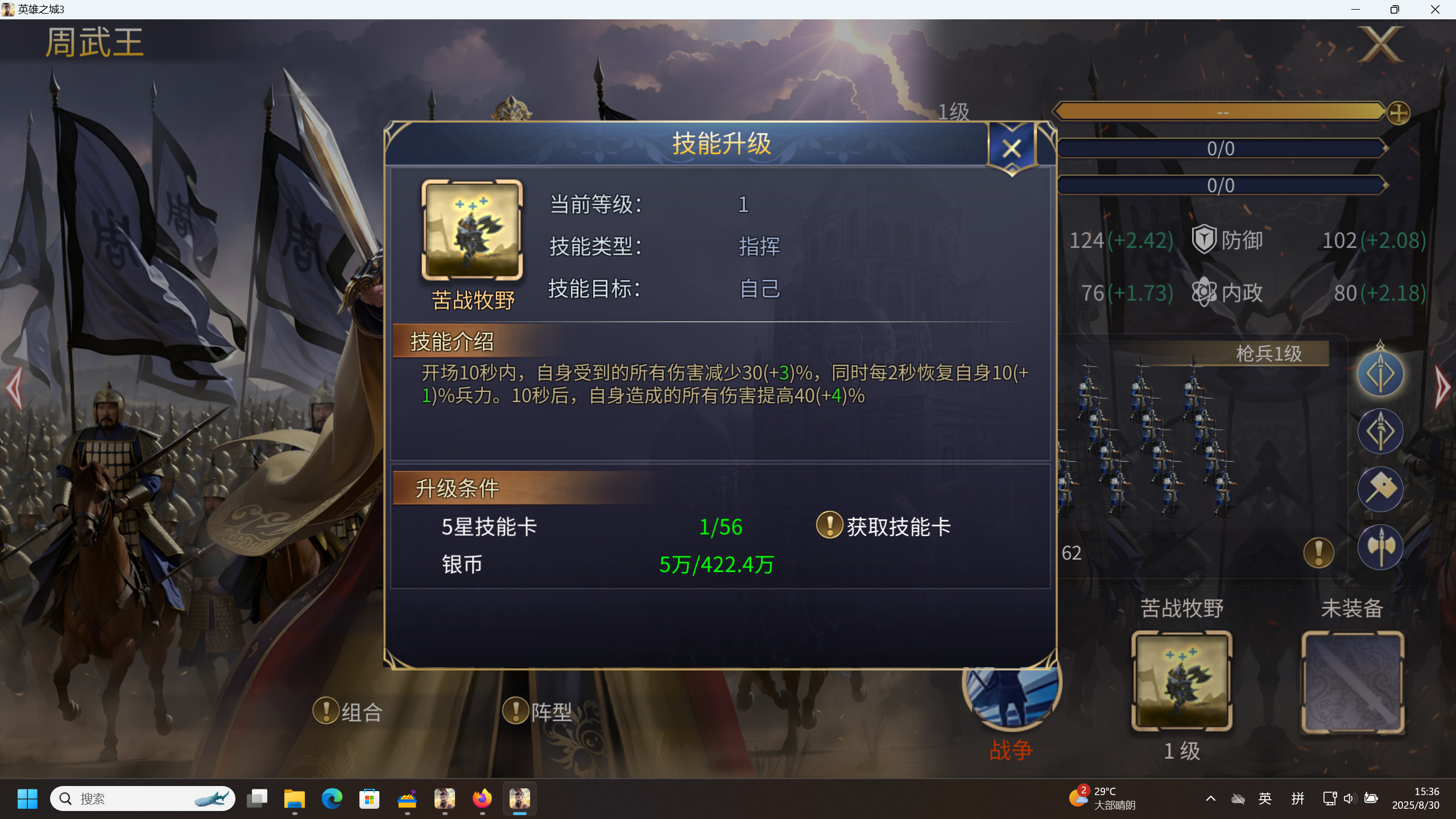 3“10秒后,自身造成的所有伤害提高40(+4)%”,提过了10秒后,武王就可以化身高达,最高76%的加伤,配合巨斧兵种,输出爆炸!