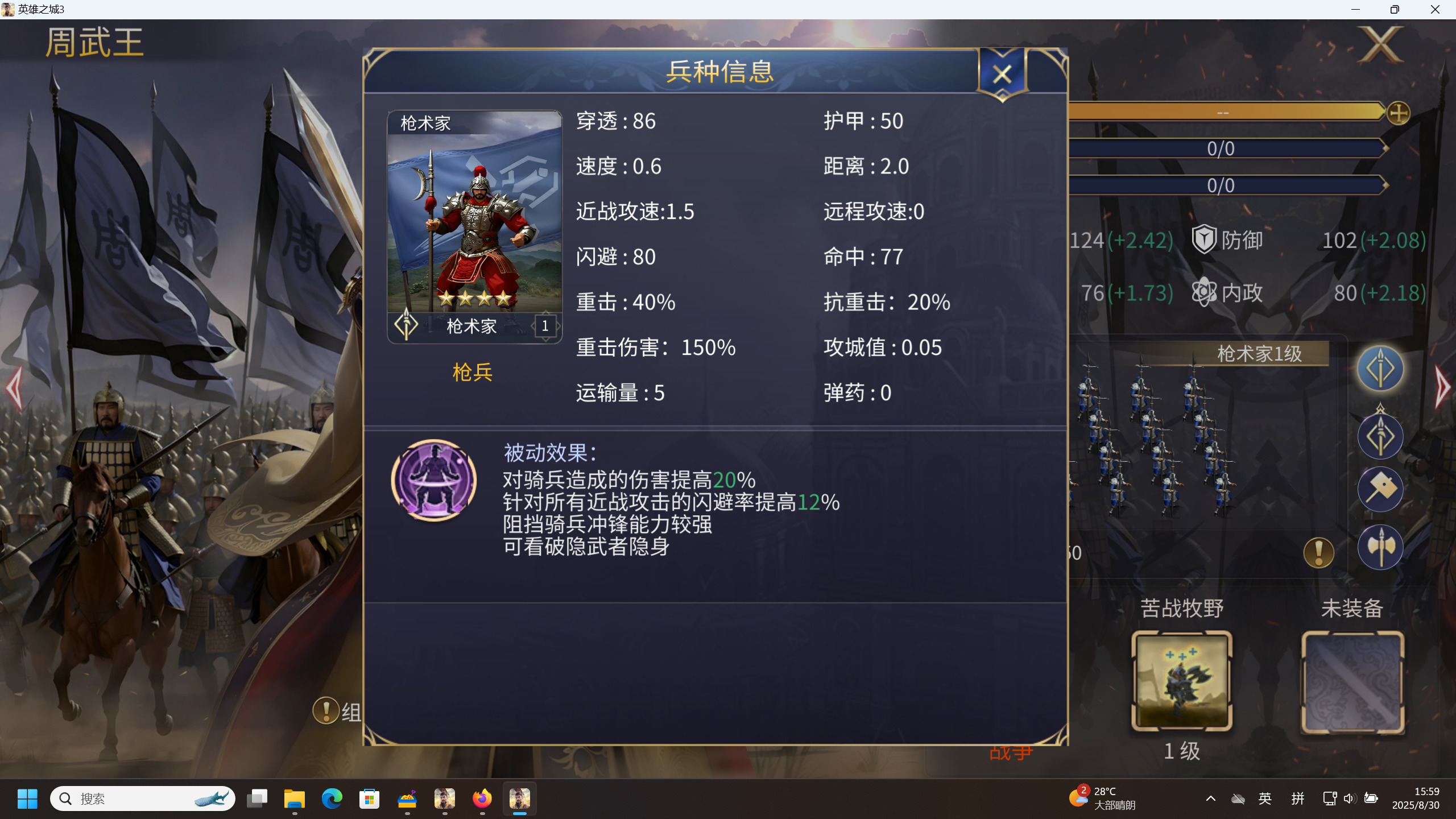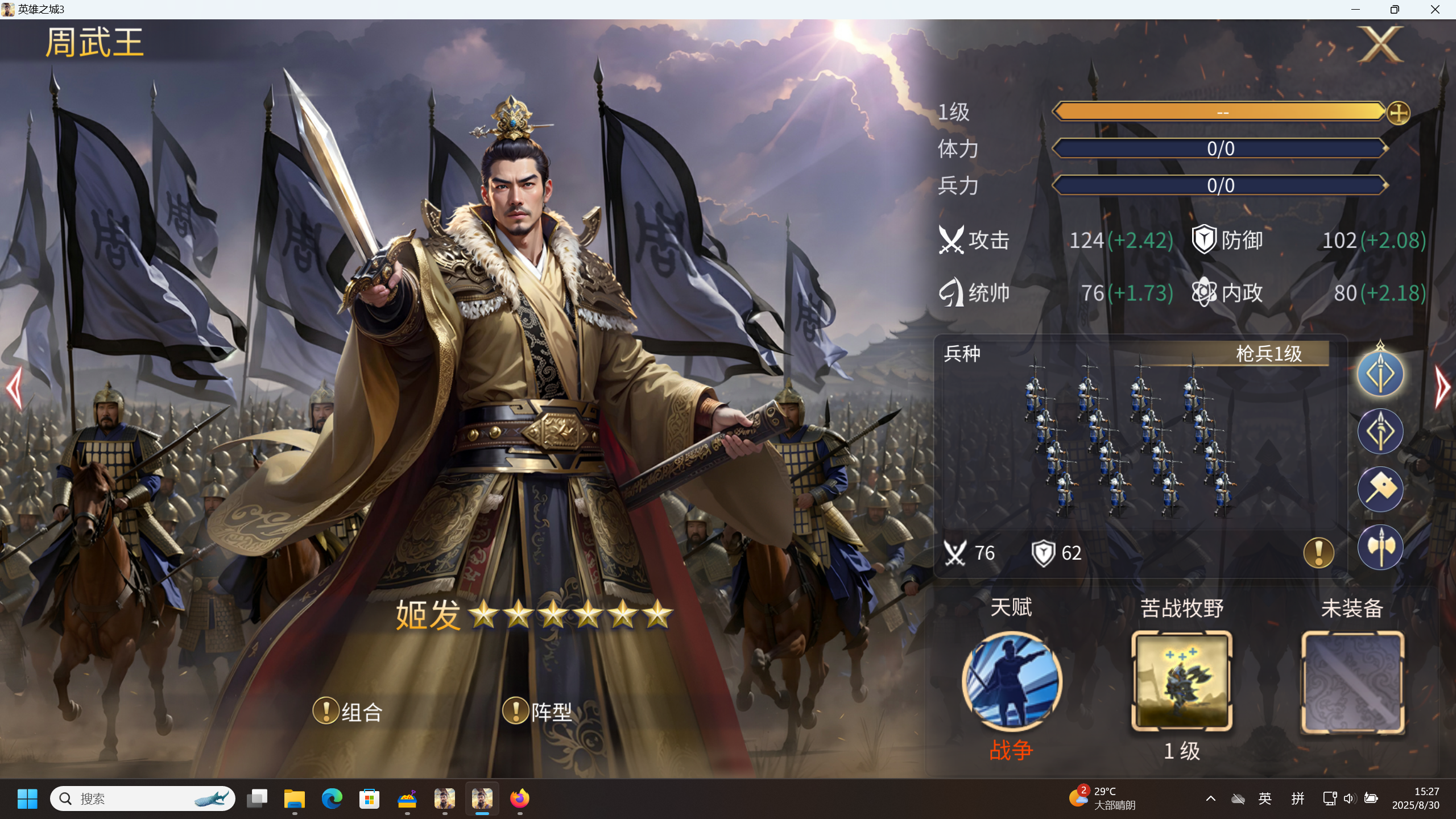 周武王作为标准的枪兵英雄,自带三个兵种都是枪兵。