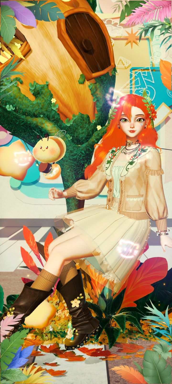 黄套部分部件风格偏日常,我比较推荐头发耳饰和鞋子,比较百搭,可以搭森系,但是tag比较稀有,注重分数的宝宝可以换这套