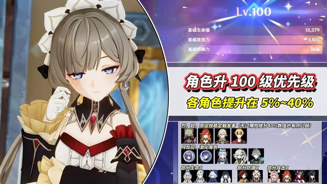 综上考虑升100级角色优先级如下:纯正剧变反应(提升约40%)>剧变直伤混合(激化/月感电/月绽放)>纯直伤(5%-10%)。