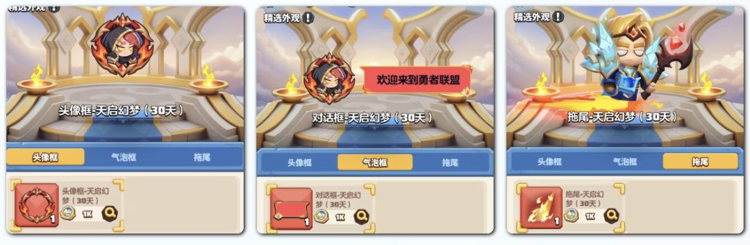 传说中的【天启幻梦】套装再度现世,一共包括三个组件,全部收集还能激活专属背景和特效噢~