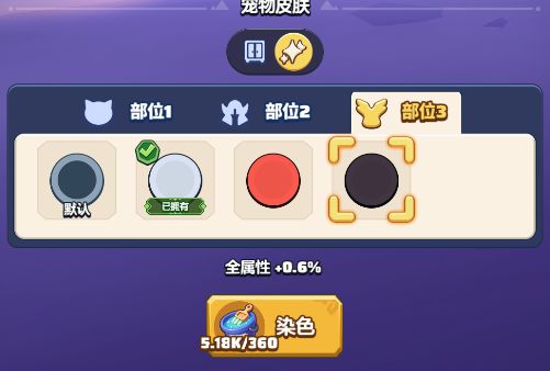 在这里,可以消耗染色道具对宠物的不同部位进行染色。每个宠物有三个可染色部位,可以支持染成各种颜色。快来打造出勇者专属的独特配色宠物叭!
