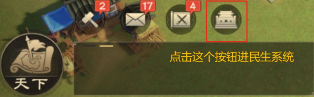 最后,点击内城中的小按钮栏位的按钮,主公即可进入民生系统啦!