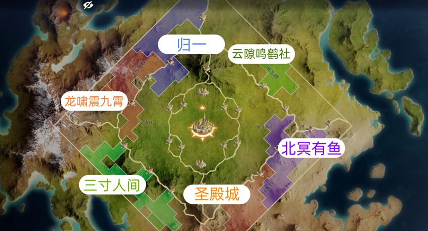 【国士丨云深】在弦月平原则选择与【破晓之翼】【苍澜】两盟和平发育,三盟一方一个进入决胜州的关口。