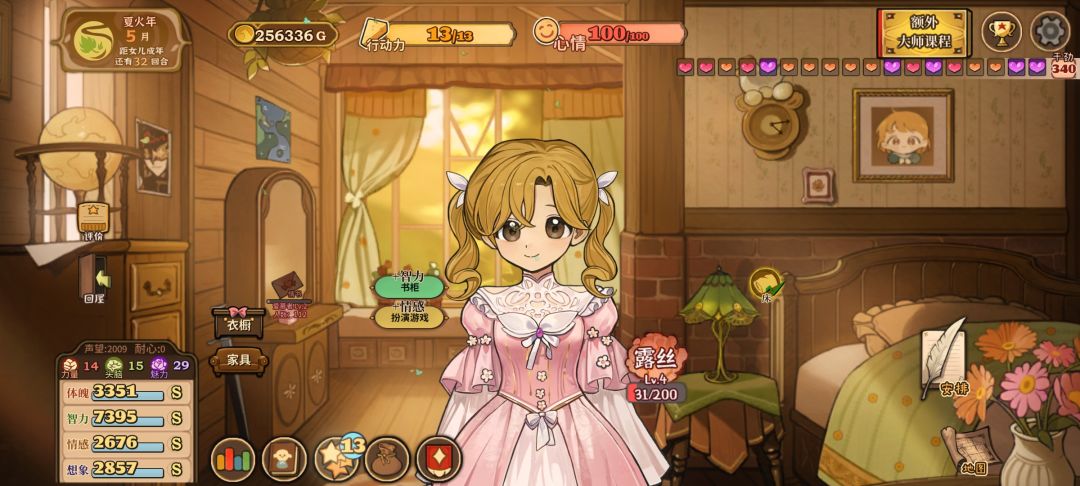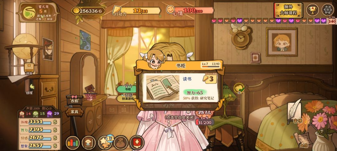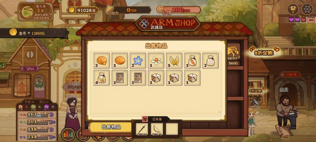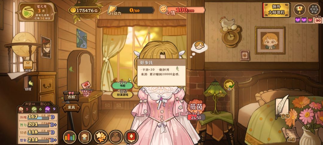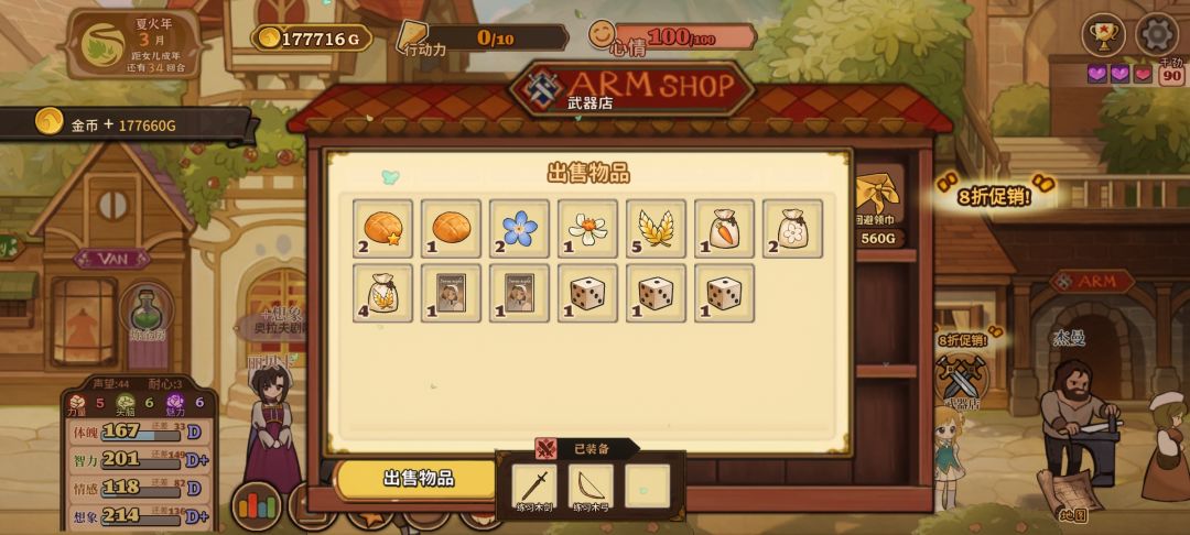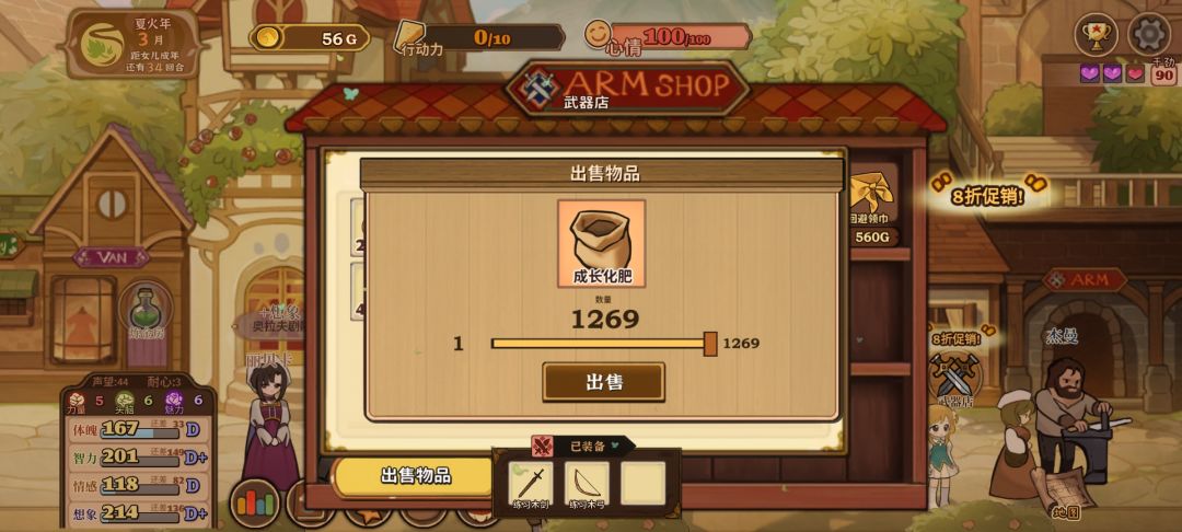 就图上所示点了甜言蜜语天赋然后等“三四月份”打折买卖就行,铁匠好感的话注意别点认识就行,不小心点到的话就当前回档,然后有了钱和肥料就种小麦这样就可以无限体力了,然后刷四维的话,可以先刷下干劲再读书划船什么的,就是成就栏,世界探索那里的大多完成后会加干劲,叠个两百左右干劲就差不多了,这样简单一点效率也会快很多,然后上三围的话,这个挺难弄的,稳定的方法是弄马奶做料理,看剧场三围随机加一点,冒险弄冰块冰花做雪糕什么的。无限刷的方法好像就只有读书概率给书页加三围,不过概率很低还需要很多时间精力和耐心一般不推荐。#火山的女儿再度重逢
