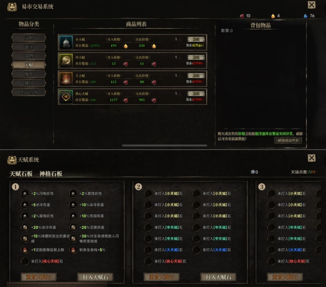 目前天赋有啥用啥,等后面刷到资源,可以通过拍卖行(易市)购买各种资源提升。所需天赋后面也会慢慢讲解。