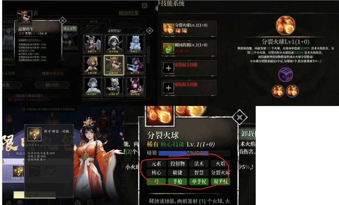 开局会送进阶和升华技能,用反复删角色的方法刷出火球的进阶和升华。在线一段时间还会送一套自选技能,可以根据自己的喜好选择,以后发育。然后把礼包码都填上。