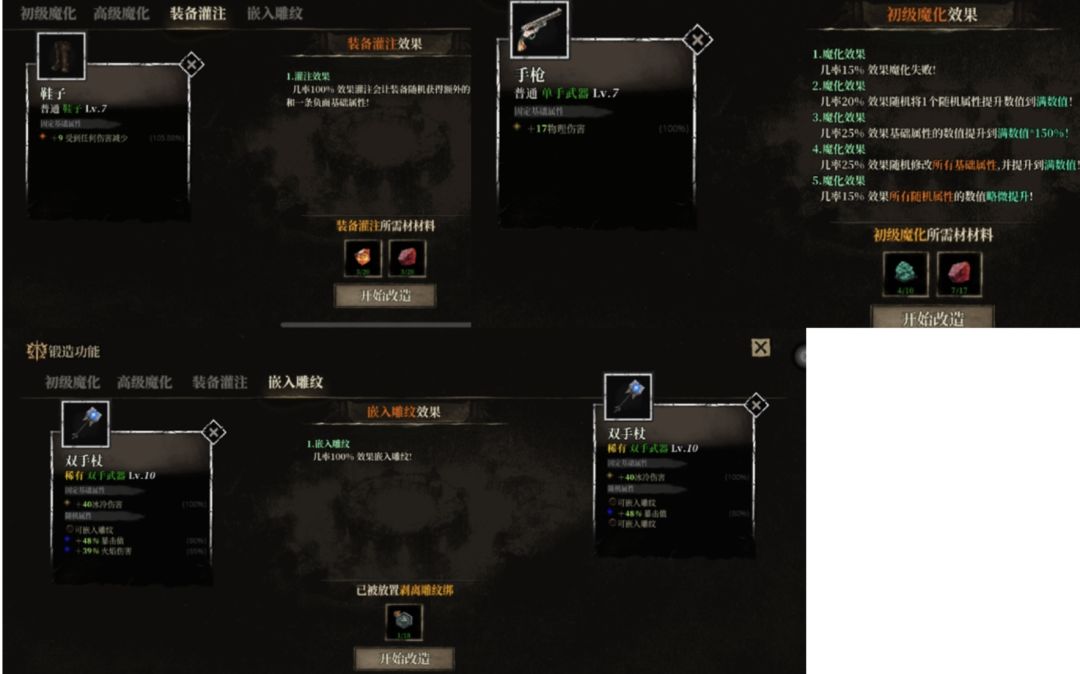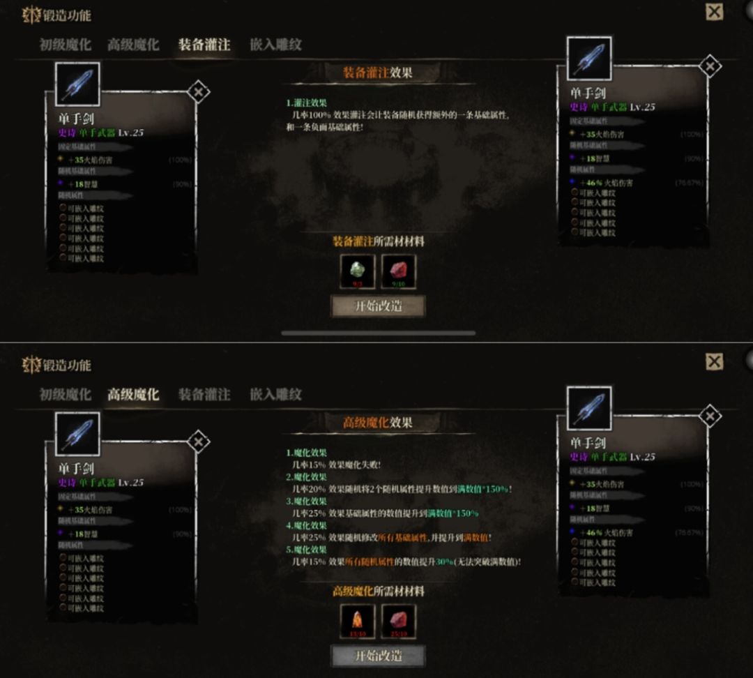 魔化:可以理解为属性强化,仅有一次机会,充满了不确定性,尽量选择有备用装的时候再进行操作。(有概率废掉)