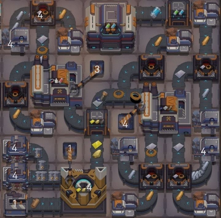 除了2图标注的,基本都是3级厂,该产线红瓶满效,绿蓝瓶效率在2级中满85%左右。初次尝试,可以2小时正常运行(只测了两小时)如果有堵塞,可以尝试一键领取几下。tip:锁住原料,领取时不会降低效率。