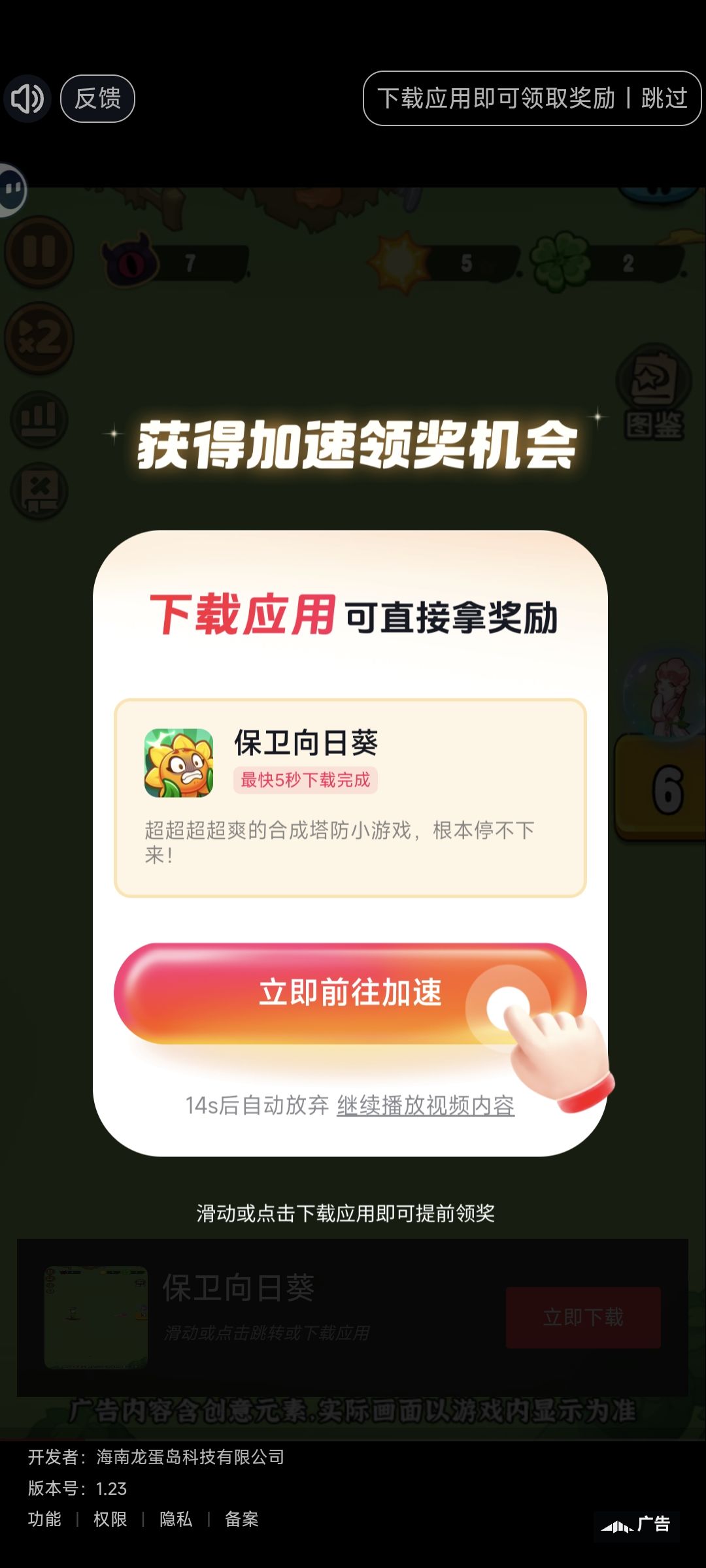 就算广告是计时的,右上角的领取成功不要信,看下面进度条,完全广告才给奖励。