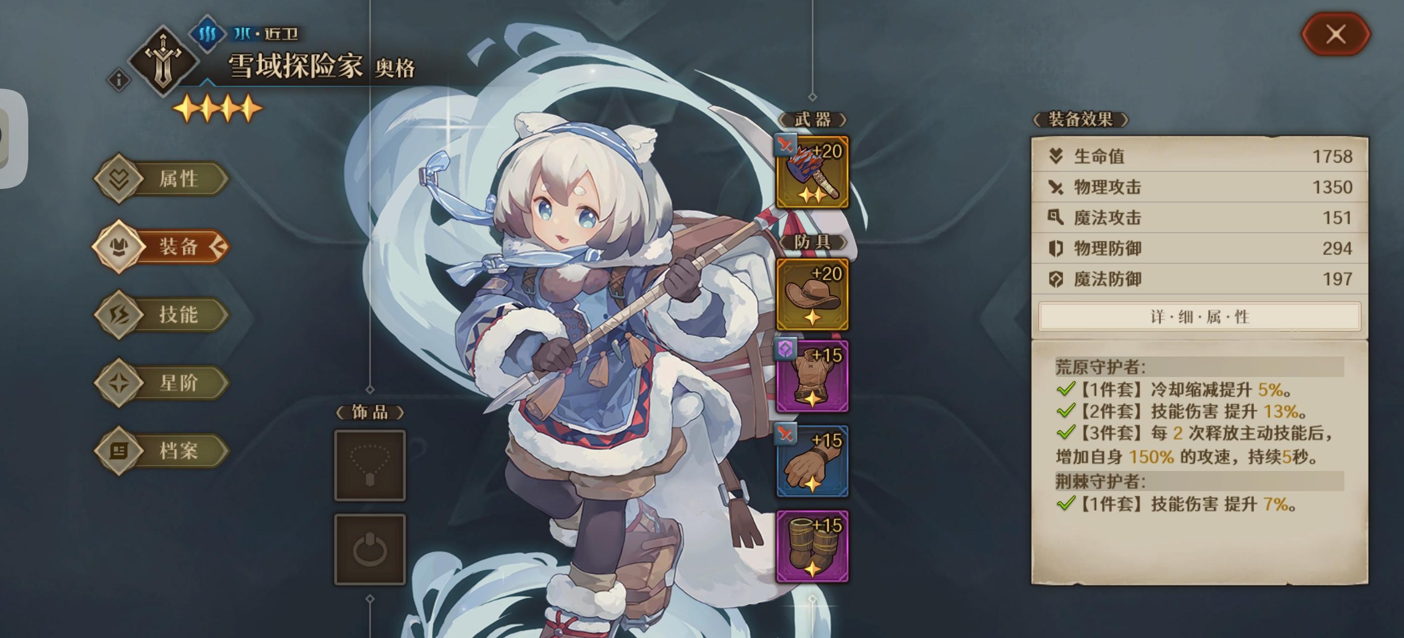 ①雪貂近卫输出,天赋有自套盾+50%攻速。