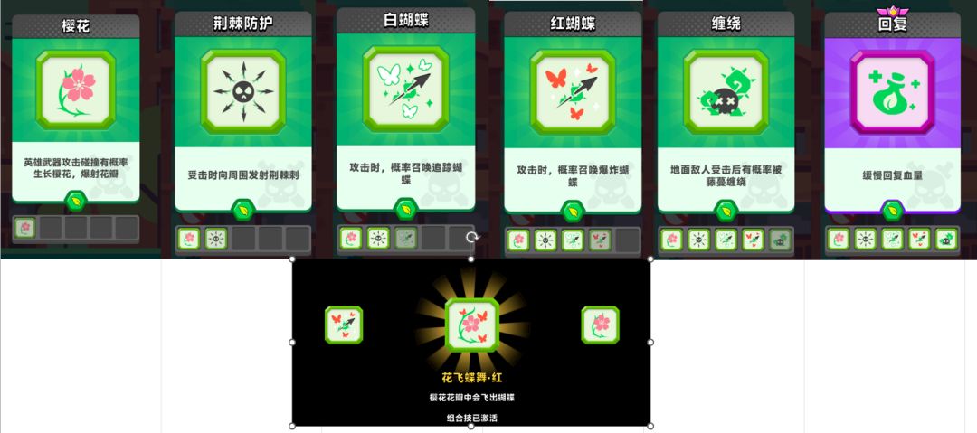 3白蝴蝶:攻击时,概率召唤追踪蝴蝶 (升级花飞蝶舞:樱花花瓣中会飞出蝴蝶)