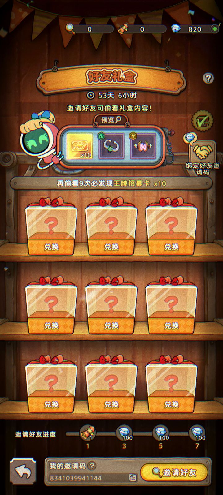 #过2-3填了,在主界面【好友礼盒】活动中输入邀请码8341039941144有200钻