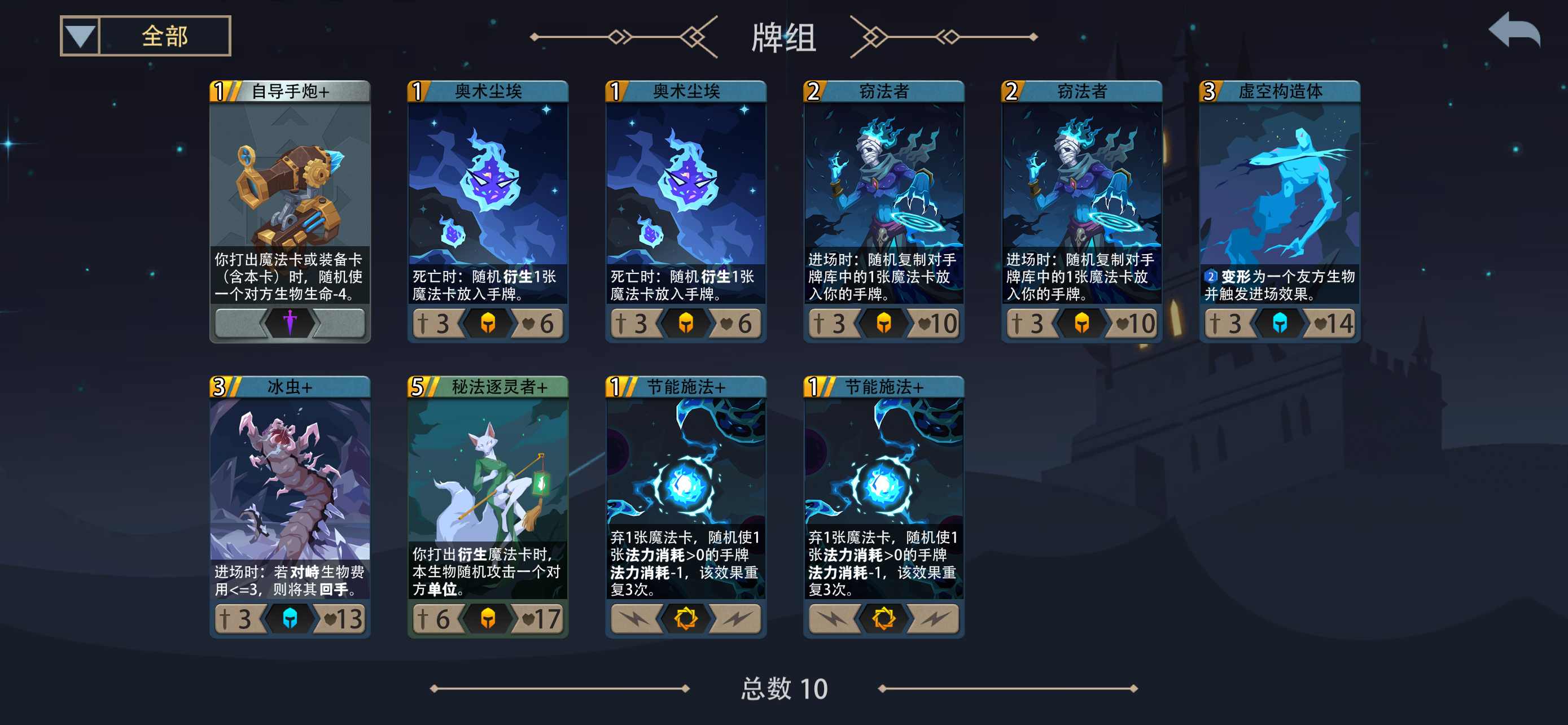 直到这次买了一次装备一次卡里面,发现了一张秘法逐灵者,两眼一亮,围绕着这张卡构建,通关了钱还没花完。