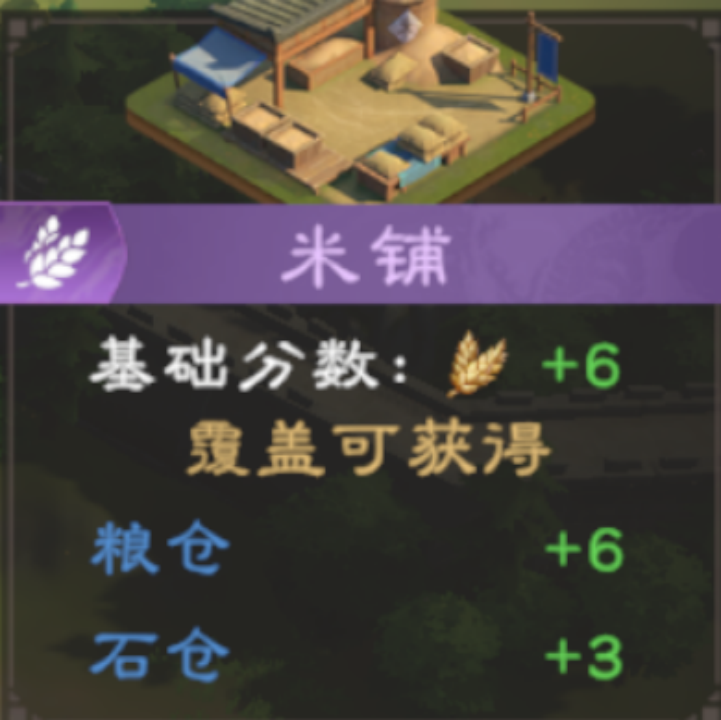 如米铺,覆盖粮仓+6分,石仓+3分。