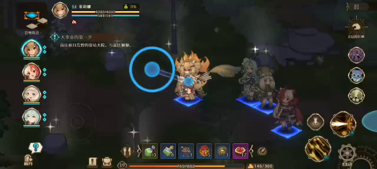- 在状态栏选中角色(蓝色高亮框)后通过左下角摇杆操控。