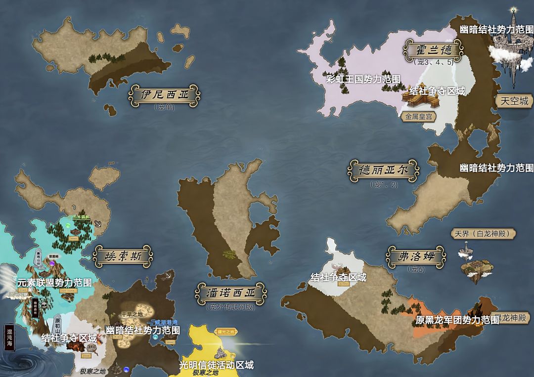 宠物王国后续1~6+大概有五个地区地图概念图