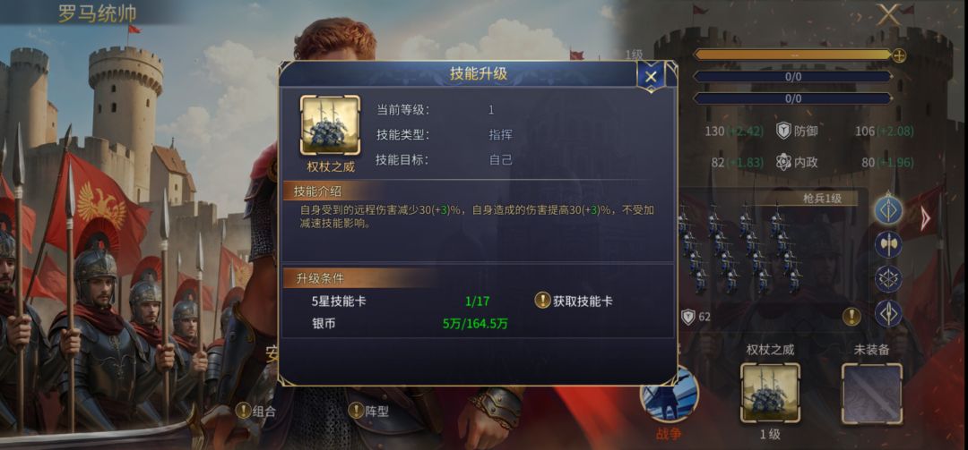 ①罗马统帅和天下布武一样,其技能效果目标都是自身,提供高额的增伤和减伤效果;