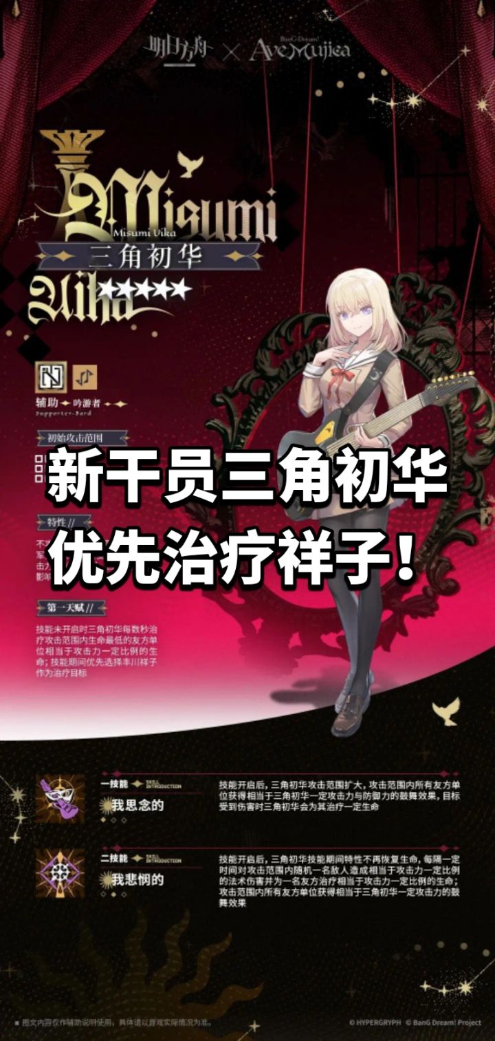 新干员三角初华技能一览,优先治疗祥子!