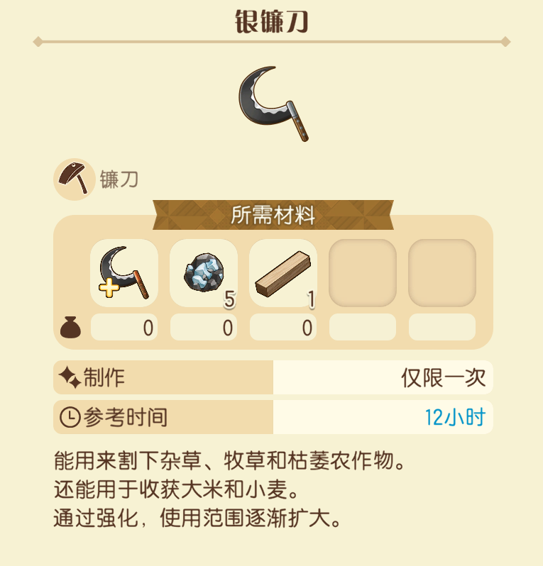 常用道具也能在风车进行多次升级,比如升级锄头增加耕地范围这种。只不过制作需要时间,生产线有限,需合理安排。